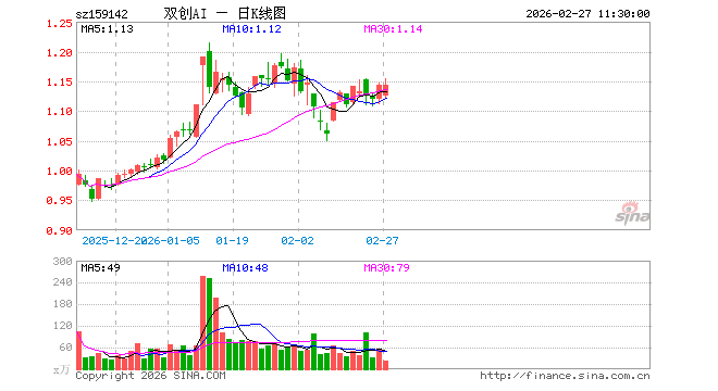 2月27日,截止午间收盘,科创创业人工智能ETF景顺(159142)涨0.09%,报1.144元,成交额2575.93万元。科创创业人工智能ETF景顺(159142)重仓股方面,中际旭创截止午盘跌6.40%,新易盛跌7.02%,澜起科技跌2.00%,寒武纪涨1.17%,金山办公跌0.15%,芯原股份涨5.63%,润泽科技涨3.32%,协创数据涨6.37%,昆仑万维涨2.02%,北京君正跌4.30%。