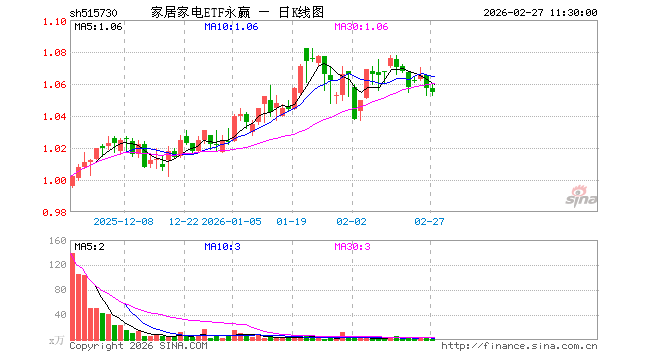 家居家电ETF永赢(515730)业绩比较基准为中证家居家电指数收益率,管理人为永赢基金管理有限公司,基金经理为储可凡,成立(2025-11-14)以来回报为5.77%,近一个月回报为-0.21%。