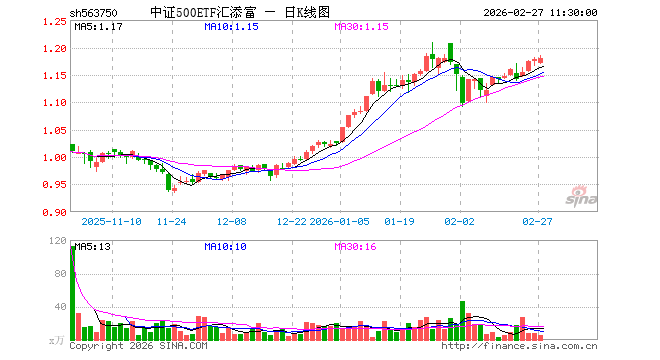中证500ETF汇添富(563750)业绩比较基准为中证500指数收益率,管理人为汇添富基金管理股份有限公司,基金经理为孙浩,成立(2025-10-22)以来回报为17.76%,近一个月回报为0.57%。