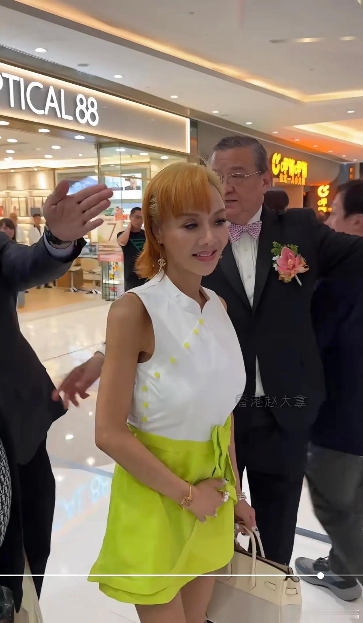 59岁叶子楣高调现身香港商场,一头黄发搭配荧光绿裙超吸睛,瞬间成为全场焦点!只是