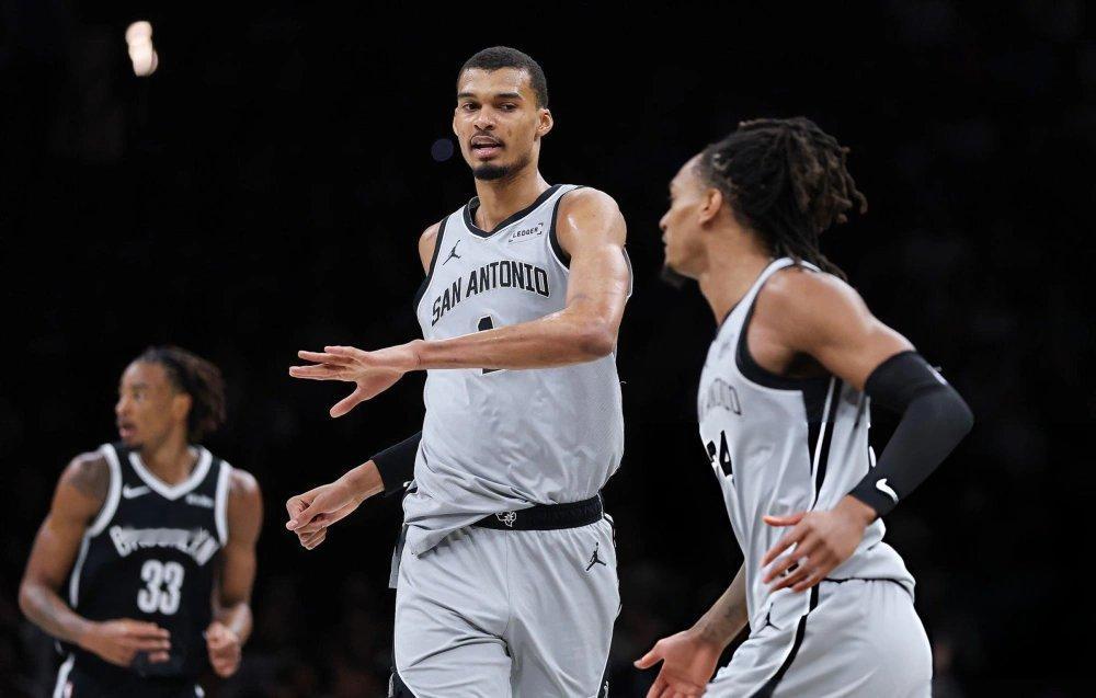 NBA常规赛马刺vs篮网 马刺队客场126-110击败篮网队,豪取一波11连胜,战绩变成43胜16负,第一节马刺就确定14分的领先优势,文班亚马今天仅仅出场26分钟,9投3中,其中三分球4中0,罚球6中6,合计得到12分7篮板5助攻2抢断2封盖,正负值达到了+15