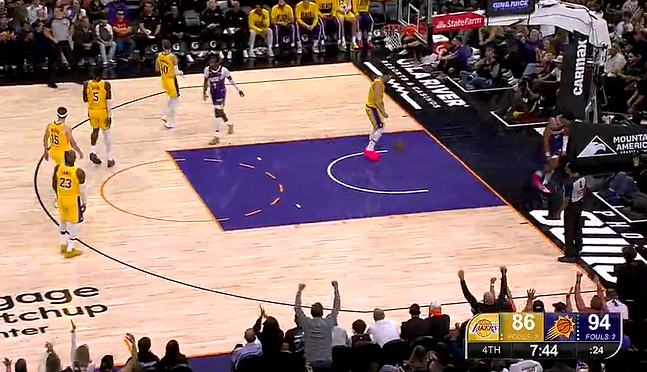 比赛第四节,邓恩反击暴扣得手,太阳末节又再次领先湖人10分。