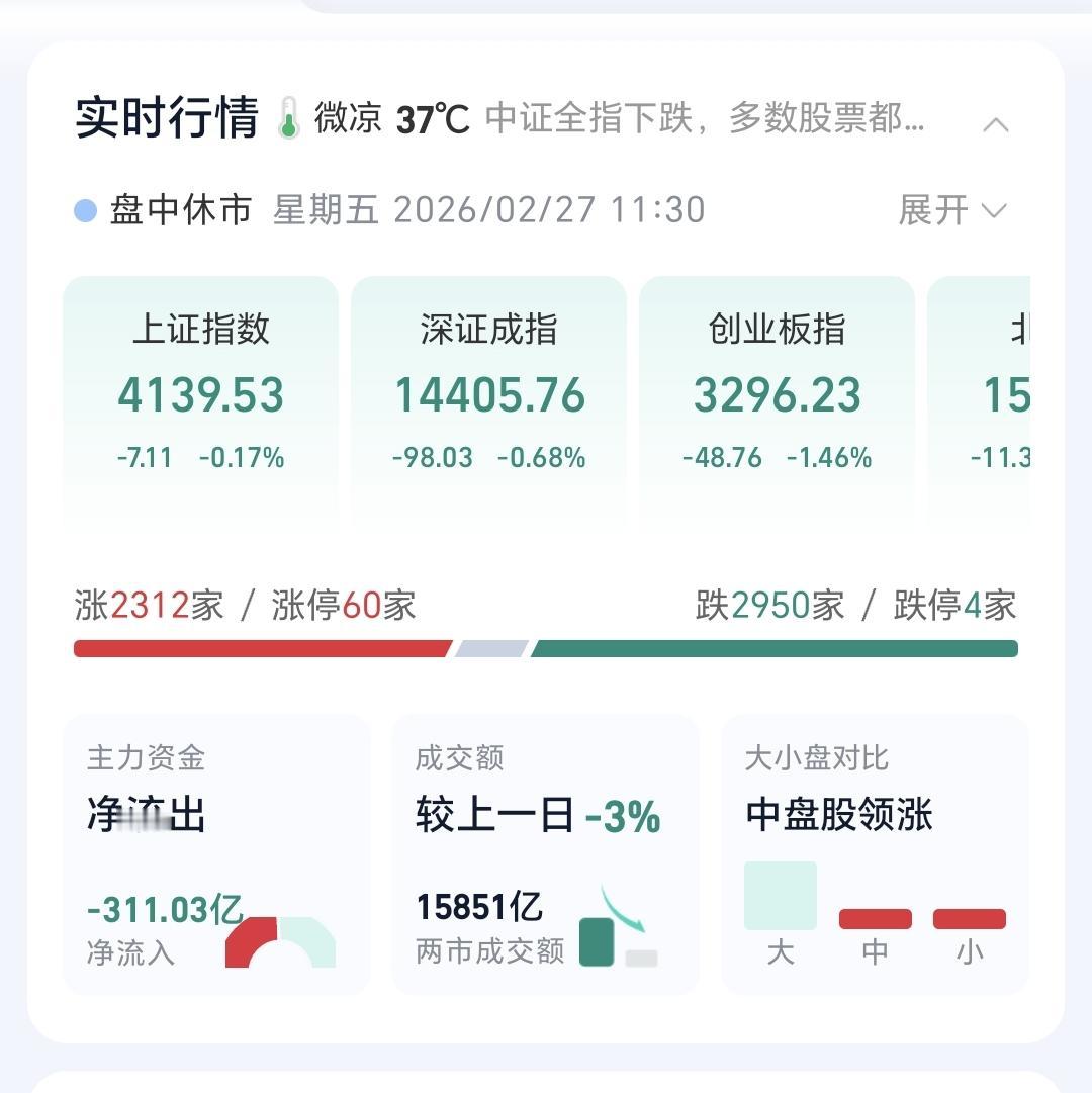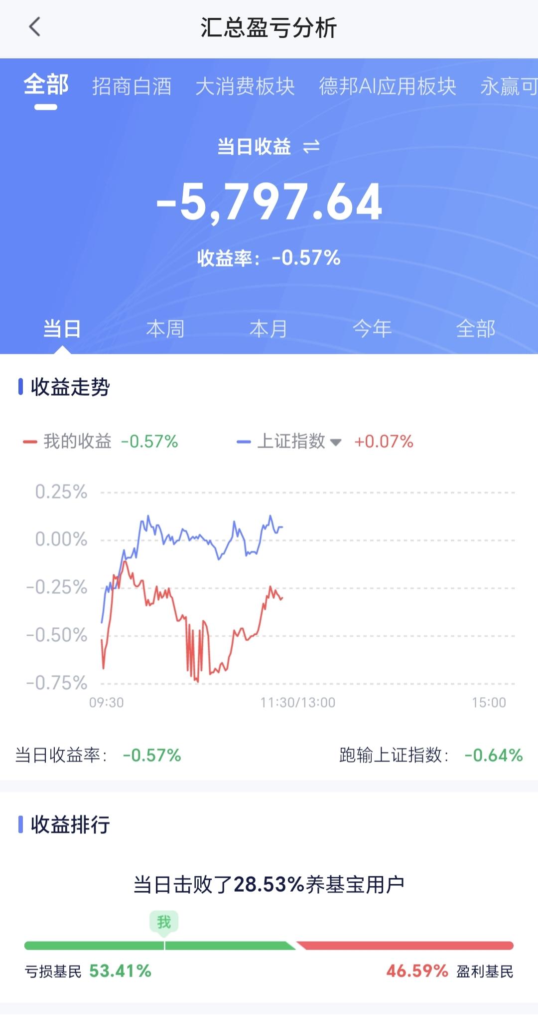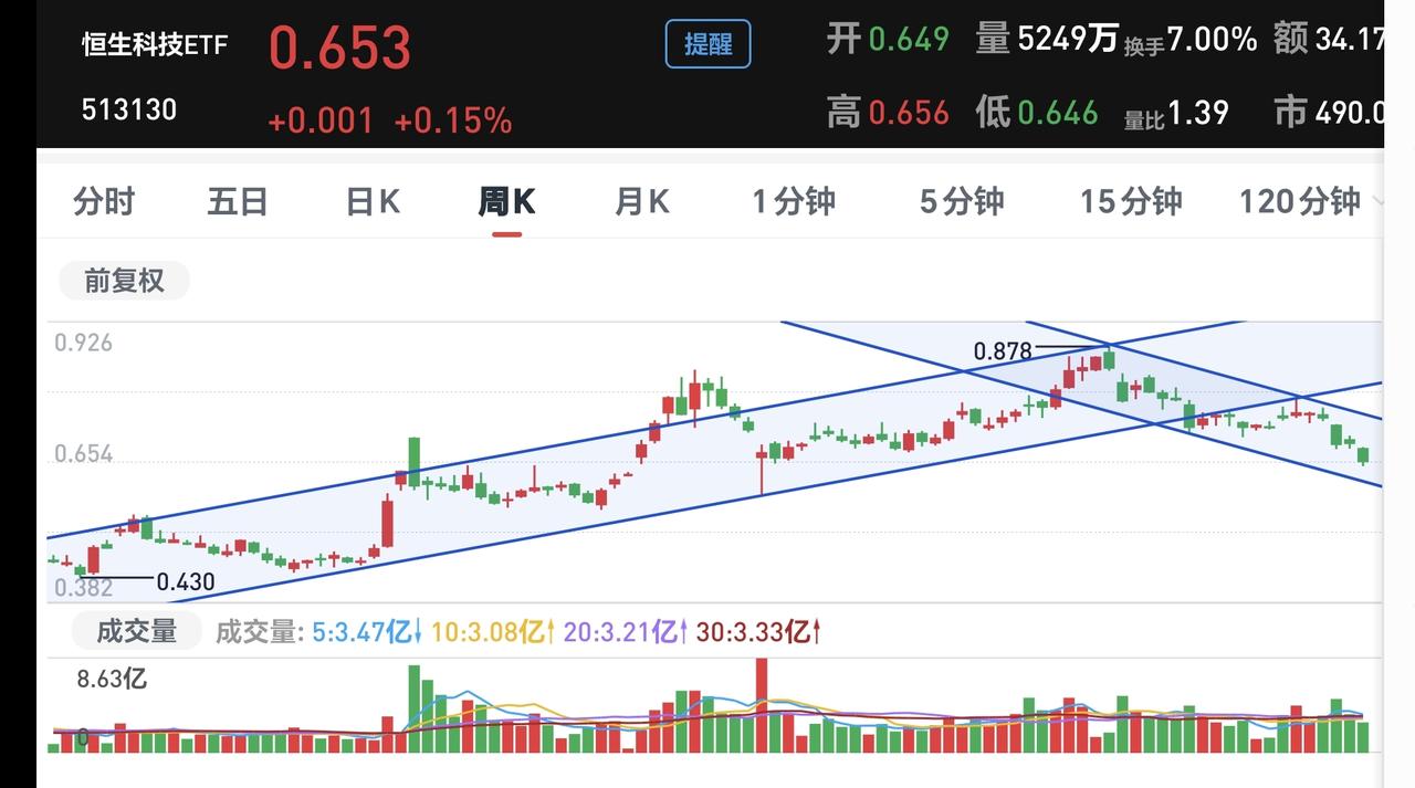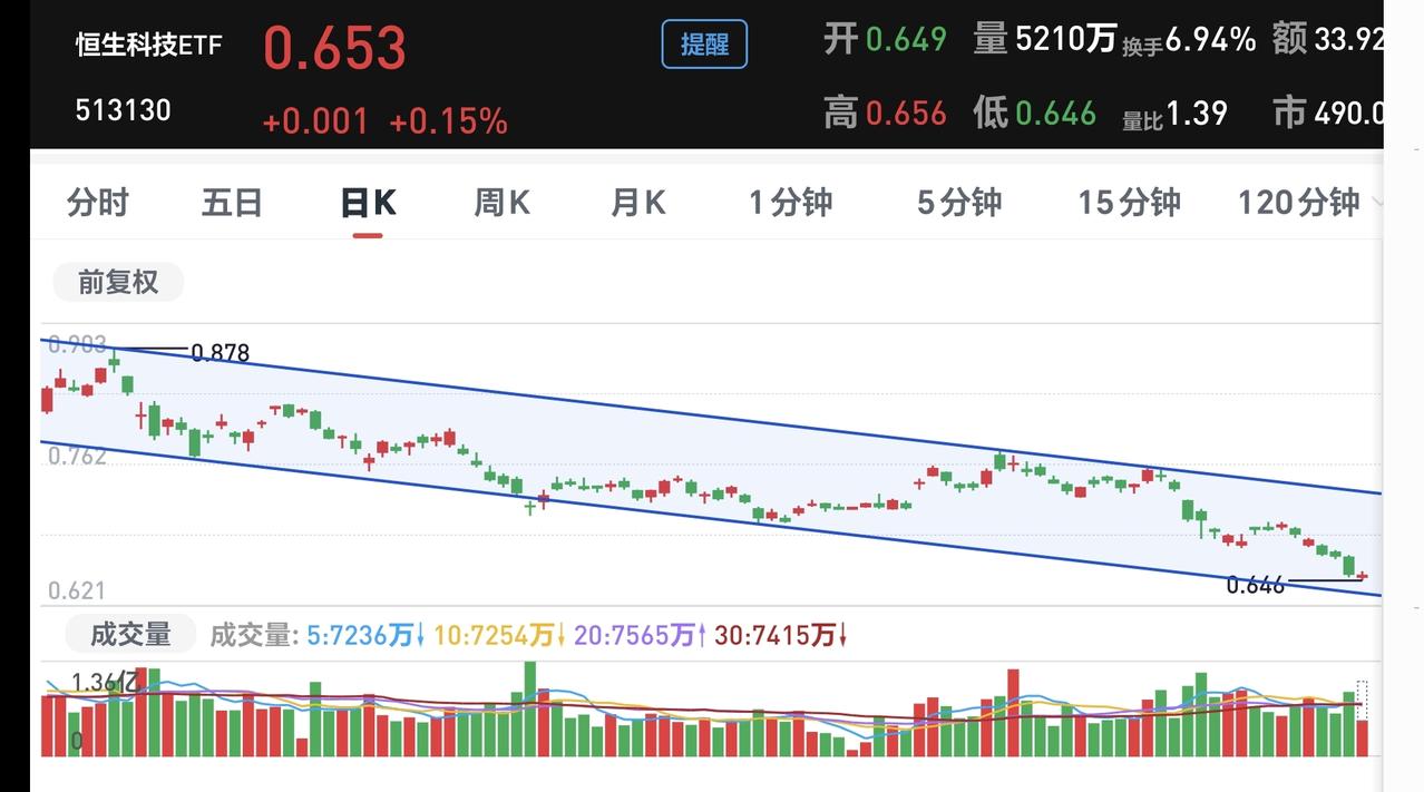 基金:昨天加了点恒生科技,目前来看是涨的,不知下午会不会跳水,真难。 这是一位朋友的留言,谢谢这位朋友。 我认为: 1:恒生科技这个位置是可以加的,特别是在前期止盈过的人,这个时候是可以回补止盈筹码的。 2:不管什么样的板块,进场的时候都需要分批,离场的时候也需要分批,我去年9月18号止盈以后,到现在没有再一次止盈,也没有进场,如果近期有再一次止盈的机会,这样的离场也是分批的。 3:不管什么样的板块,进场以后第二天的涨跌并不是很重要,你只要知道现在是不是在相对低位区域,低位不是一个点,是一个区域,低位区域里面也是有涨有跌的,止盈的时候也是这样的,只要是相对高位区域就是可以的,高位区域里面也是有涨有跌的,止盈以后也是会有涨有跌的,止盈以后并不一定就肯定是下跌的。 4:不管什么样的板块,进场以后就可以忽略它的涨跌,如果是低位区域进场的,早晚都会涨上去,如果涨上去了,那是你的判断力好,如果迟迟不往上上涨,那是市场的事情,跟你一点关系也没有。 香港市场今天是上涨,恒生指数上涨了0.73%,国企指数上涨了0.36%,恒生科技指数上涨了1.05%。 看下面的截图3,这是恒生科技指数日K线图,现在明显是处于下跌通道中,距离下跌通道的下轨线比较近,如果是筹码的回补,这个地方是没有问题的,如果是想进场,稳妥一点是需要等待上涨突破日线级别下跌通道的上轨线再做决定。 看下面的截图4,这是恒生科技板块周K线图,前段时间下跌跌破周线级别上涨通道下轨线以后,开启了新的下跌趋势,现在也是处于周线级别短期下跌通道中,这个周线级别短期下跌通道与日线级别下跌通道重合,所有想进场的人都可以观察日线级别的下跌通道,只有上涨突破了日线级别下跌通道的上轨线,这个板块才有反转的可能性。 持有基金现在盘中估值亏损5797元,盈利金额最大的三个板块是:大消费板块,创新药板块,先进制造板块,亏损金额最大的三个板块是:5G板块,创业板指芯片,半导体板块。 中午收盘的时候,三大指数都是下跌,下跌的幅度不是很大,两市累计成交15851亿,相比于昨天同期缩量了3%,上涨2300多家,下跌2900多家,下跌家数超过了上涨家数,涨停60家,跌停4家,主力资金净流出311亿。 整个市场主力资金净流入最多的三个板块是:计算机板块,人工智能板块,大数据板块,主力资金净流出最多的三个板块是:高端制造板块,大科技板块,电子板块。 整个市场上涨幅度最大的三个板块是:稀土泳池板块,绿色电力板块,钢铁板块,下跌幅度最大的三个板块是:Cpo板块,双创50板块,通信板块。 到现在为止的判断是,今天进场和离场的可能性不大,下午会继续观察,有观点以后会第一时间分享给大家。 花1秒钟点赞,花30秒钟评论,就是对我最大的支持,谢谢大家的支持。