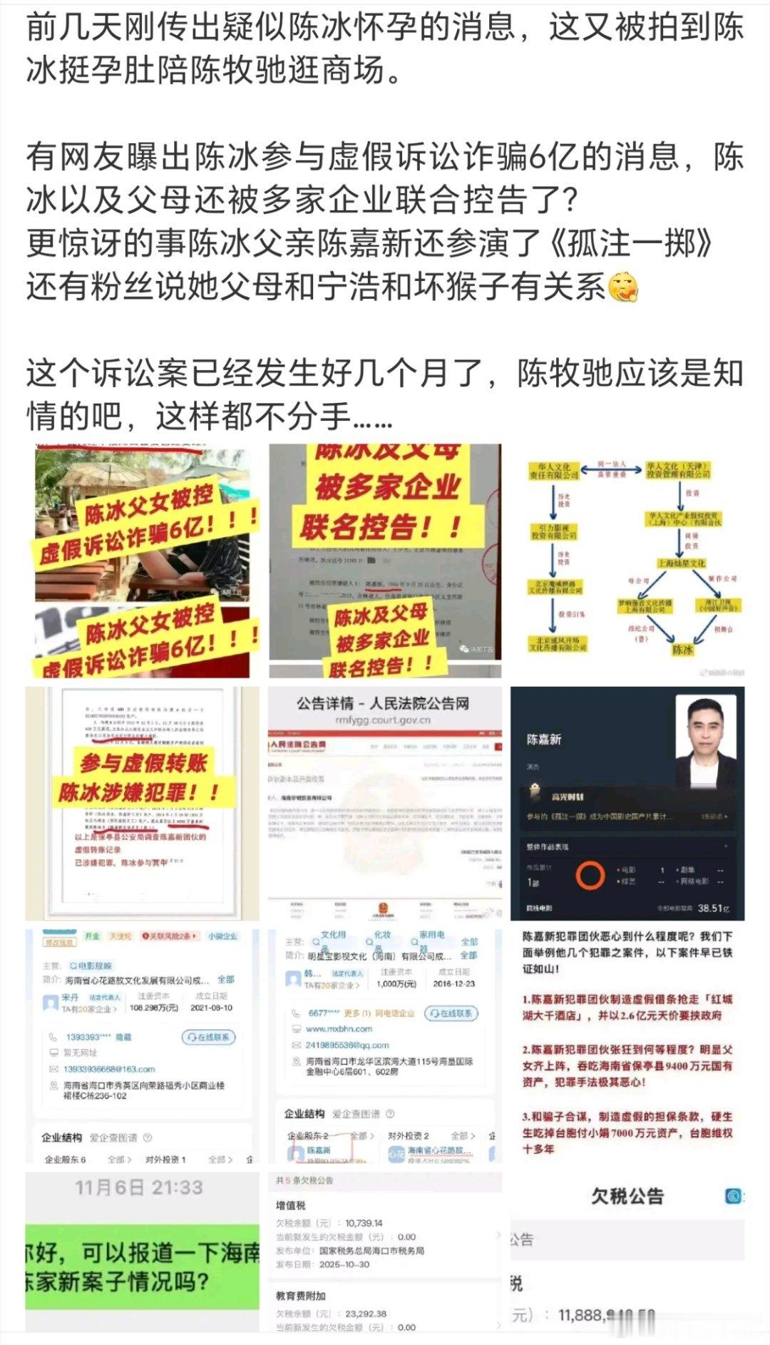陈冰挺孕肚和陈牧驰逛街那我只想知道这些事是真的假的?网传陈冰家里这么多事有没有回应过?陈牧驰就这样每次陪陈冰逛街上热搜,如果是假的他为什么不出来否认啊我想知道🤔