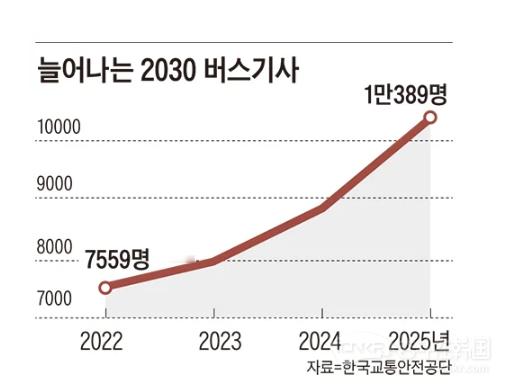 韩国交通安全公团数据显示,2030世代公交司机人数从2022年的7559人增至2025年的1万389人,3年间增长约37%。公团相关人士指出,过去培训班学员多为40至50岁群体,如今2030世代比例显著提高。