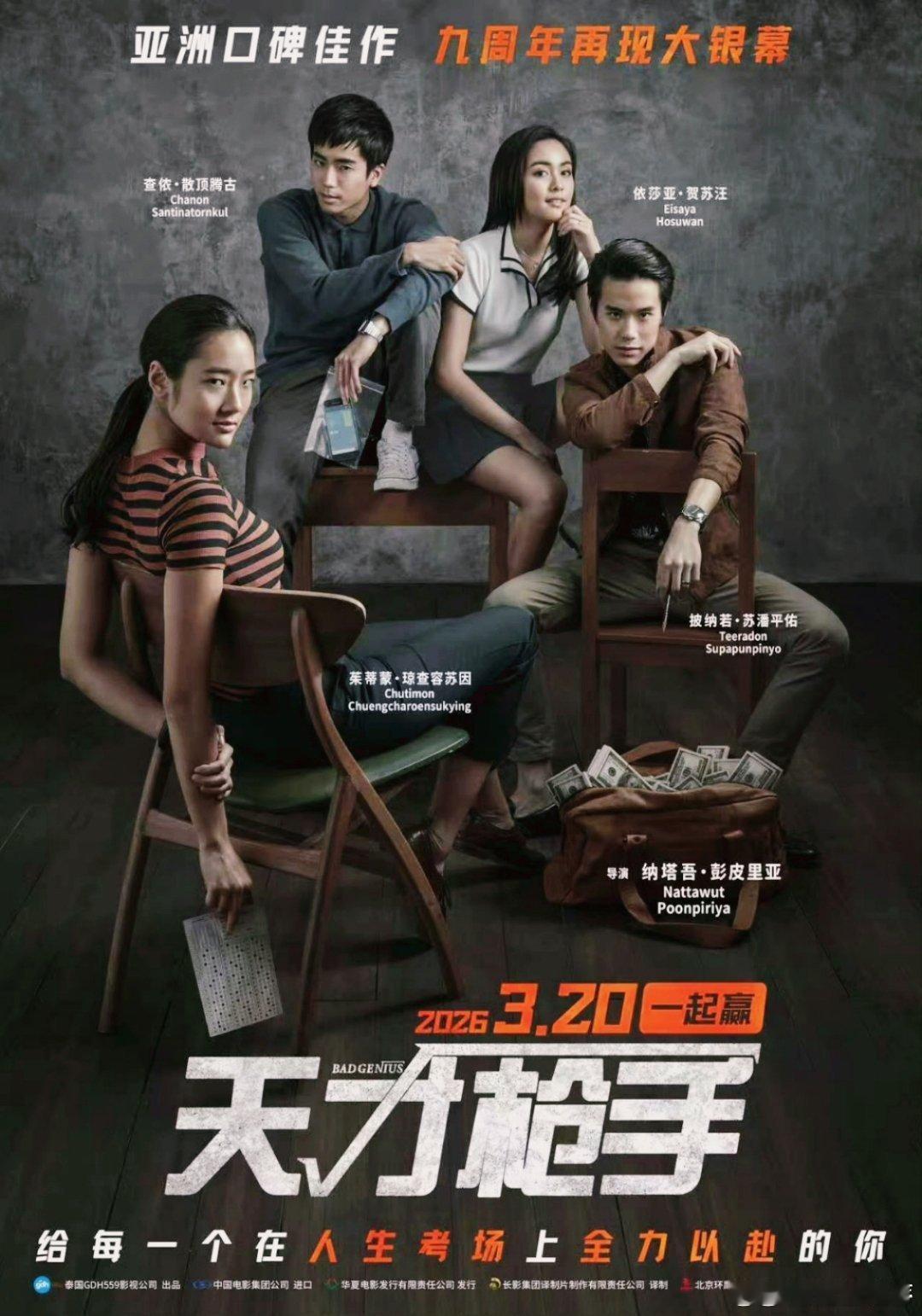 天才枪手重映定档3月20日定档内地。这电影取材真实作弊事件,天才小琳和小伙伴策划跨国作弊,2017年首映票房超2.7亿,期待~😎