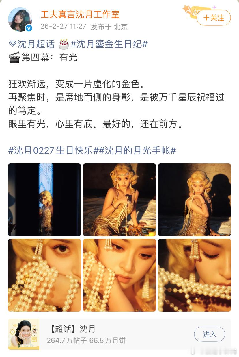 沈月工作室每小时卡点庆生照 🆘这个策划好棒!每小时卡点27发庆生照那会到今晚吗沈月个人工作室