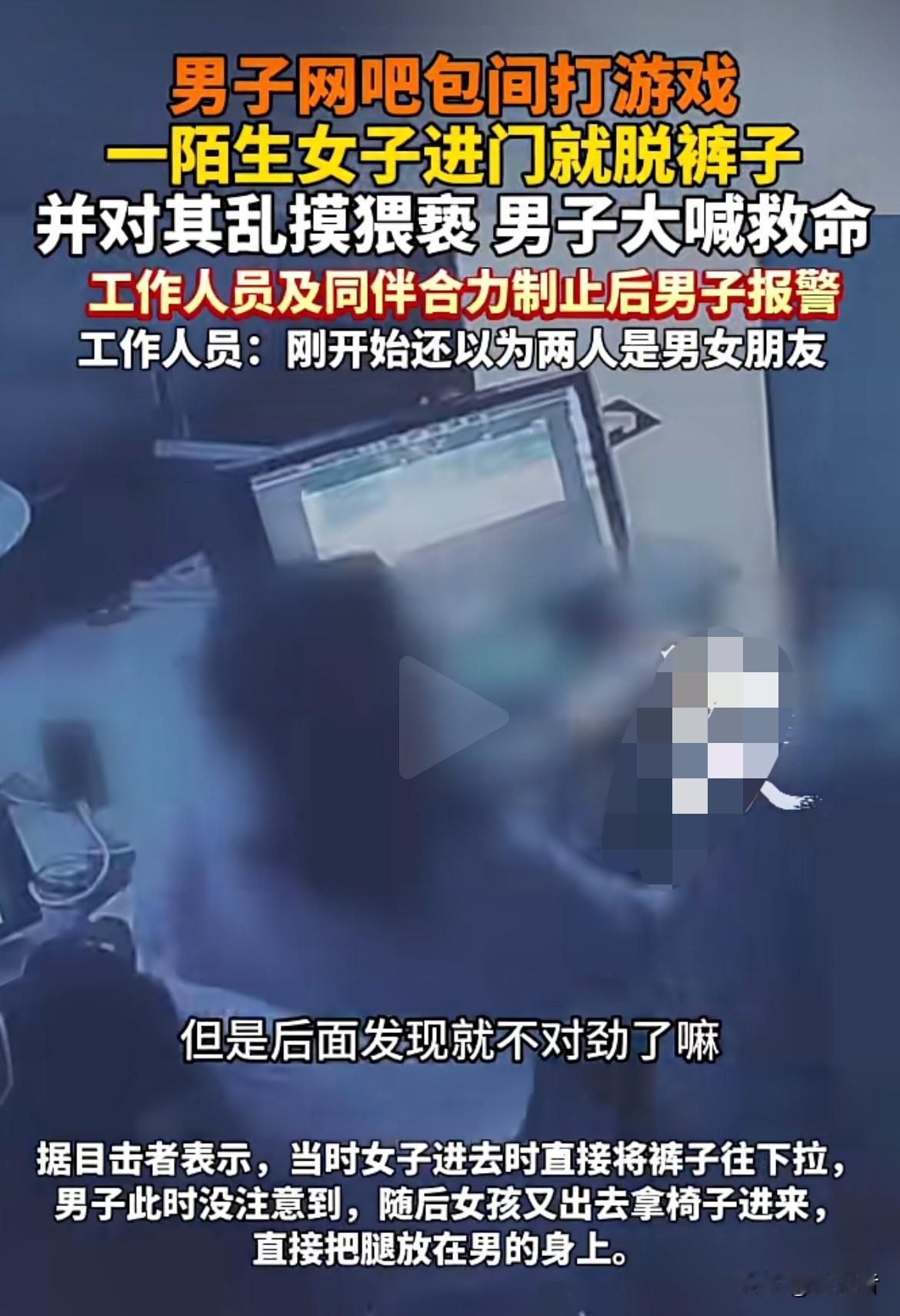 突然一个陌生女子进来就脱裤子,还对他乱摸。男子估计当时都懵了,吓得大喊救命,工作人员一开始还以为是男女朋友,后来才发现不对劲。目击者说女子进去直接拉裤子,还出去拿椅子进来把腿放男的身上。这女子的行为也太疯狂了,这要是在打游戏正上头的时候,突然来这么一出,谁受得了啊。