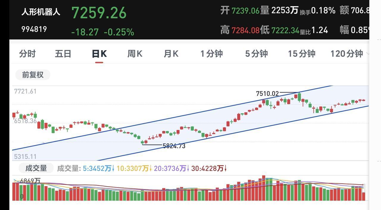 基金:机器人板块究竟应该怎么应对 机器人板块今天是下跌,盘中估值下跌了0.77%,这个板块的持有人数在所有板块当中排名第四位,说明散户人数是比较多的。 春节之前,春晚上有机器人表演的消息很早就透露了出来,许多人就赶紧进场,认为春节以后这个板块会有大涨,但现在看,并不是这样的。 我很少关注消息面,当我听到某些消息的时候,在别人那里已经是旧闻了,如果我听到消息进场的时候,别人已经利用这个消息在出货了,这就是信息的不对称,我们这些普通人是不可能利用消息来挣钱的。 很多时候你知道的消息,是别人故意让你知道的消息,很多时候你不知道的消息,你什么时候都不会知道,当你知道了某个消息的时候,你都需要考虑一下,这个消息到了我这里是几手的消息,就像很多老实人找了一个漂亮的老婆,那是这个漂亮的老婆因为某些原因需要找一个老实人嫁了,至于是几手,只有他老婆才知道。 机器人板块日线级别处于上涨通道中,距离上涨通道的下轨线更近一些,基本上是一个横盘震荡的状态,最近需要观察会不会下跌跌破这个上涨通道的下轨线,但只要不跌破这个上涨通道的下轨线,短线持有的人就可以继续持有。 机器人板块周线级别也是处于上涨通道中,是处于这个上涨通道中间的位置,小幅度的上涨和下跌都改变不了周线级别的上涨趋势,长线持有的人可以继续持有,只有跌破了周线级别上涨通道的下轨线,长线持有者才可以考虑要不要止盈出来观望。 机器人板块日线级别和周线级别都处于上涨通道中,短线持有的人和长线持有的人都可以继续持有,日线级别上涨通道的下轨线是短线持有者的持有条件,周线级别上涨通道的下轨线是长线持有者的持有条件。 市场下午还是震荡走势,下探不跌破4119点都不要过分担心,上涨不突破4152点都是无效波动,不到4190点附近的调整都不会是大级别的调整,对于我们半仓的人来说,只有发现有可能有大级别的调整才会进行再一次的止盈,现在的位置半仓最合适,现在的位置半仓的人完全可以喝茶看戏。 花1秒钟点赞,花30秒钟评论,就是对我最大的支持,谢谢大家的支持。