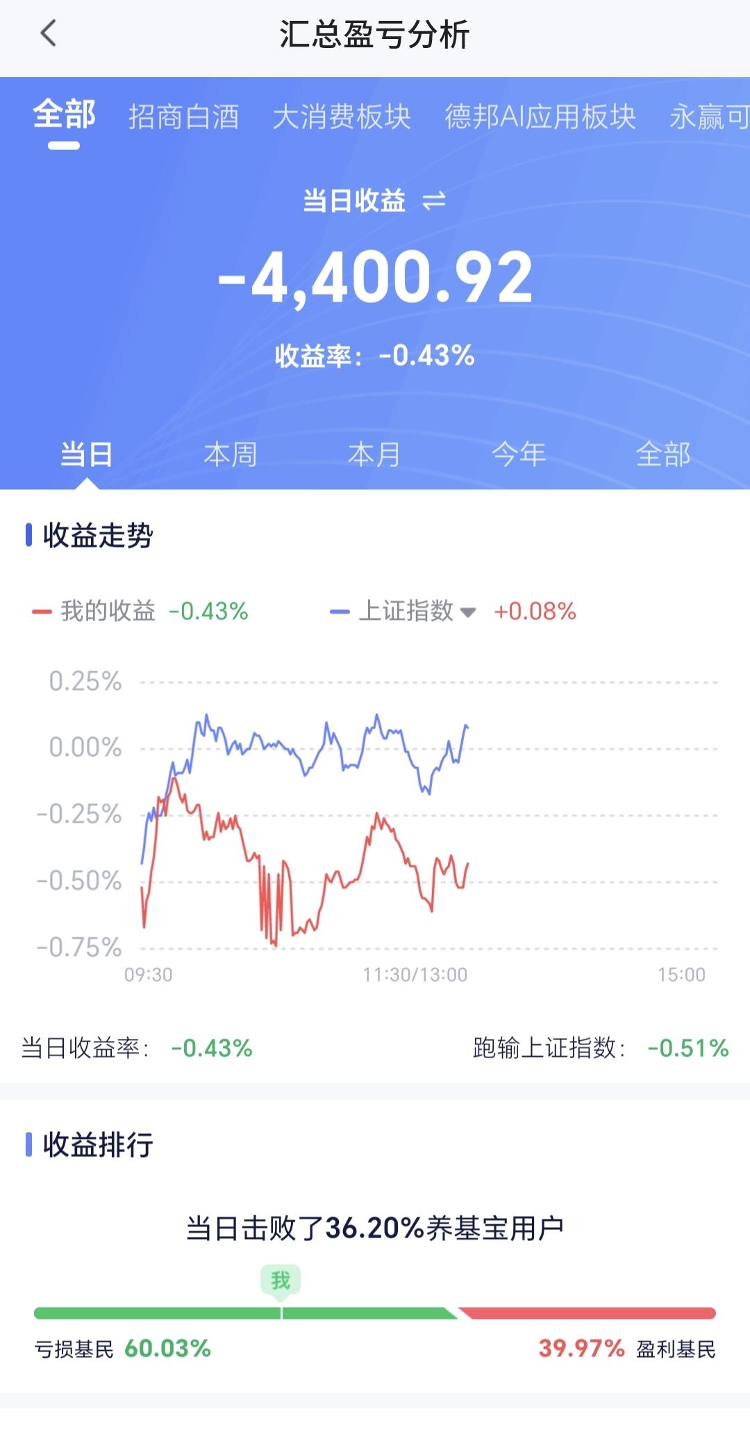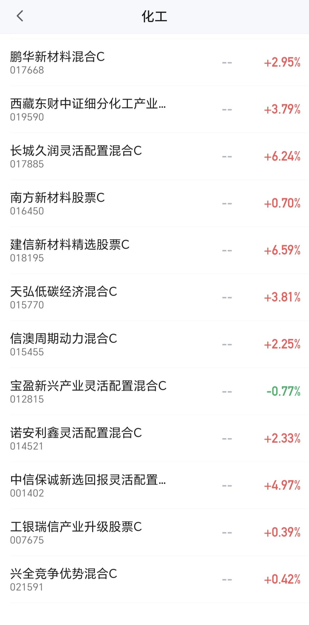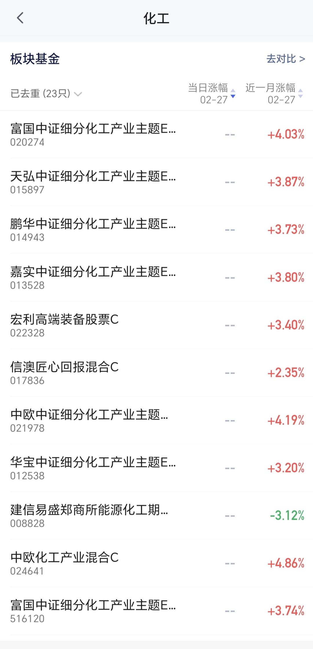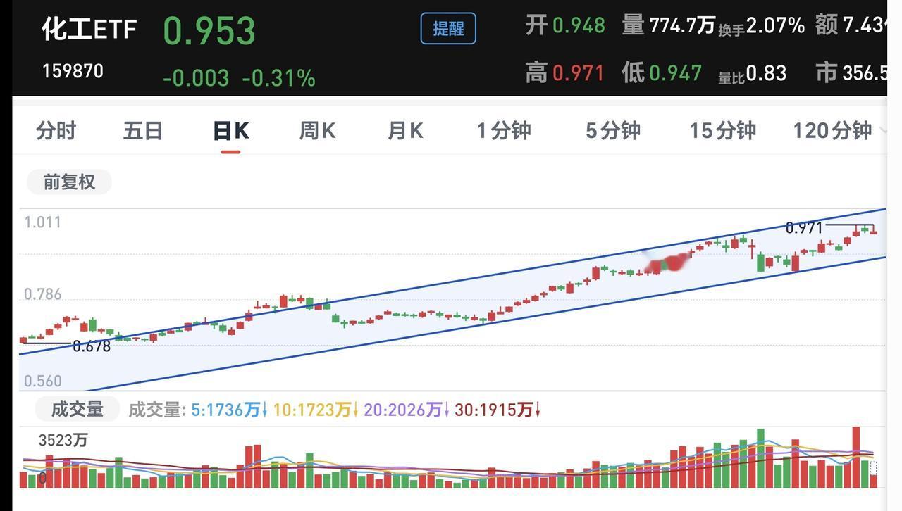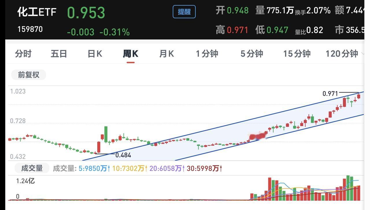 基金:化工板块究竟是什么情况 化工板块的基金今天下跌了0.35%,是一个冲高回落的走势,这个板块的持有人数在所有板块当中排名第五位,板块中的散户人数也是比较多的。 这个板块有23只基金,基金名单见下面的截图2和3,近一个月以来,这个板块中有两只基金是下跌的,其他的基金都是上涨的,上涨幅度最大的基金上涨了6%左右。 化工板块日线级别处于上涨通道中,现在处于上涨通道的中间位置,与上涨通道上下轨的距离差不多远,小幅度的涨跌都影响不了这个板块日线级别的上涨趋势,短线持有的人可以继续持有。 化工板块周线级别也是处于上涨通道中,但距离上涨通道的上轨线更近一些,不建议在这个位置进场,凡是在上涨通道上轨线附近,都是不建议进场,因为这个位置的性价比已经不高。 这就像一个小伙子,看到了一位大姑娘很漂亮,很想追求这位姑娘,但这位姑娘现在与一个帅小伙热恋当中,你说现在去追求这位姑娘的难度大不大,但如果这位姑娘与那位帅小伙闹矛盾分手了,这位姑娘感情处于低谷的时候,你再出手追求,是不是更容易得手?是不是更容易成功? 玩基金跟找女朋友道理是一样的,社会上很多事情的道理都是一样的,虽然事件不一样,但道理是相通的,趁虚而入是许多人都知道的词语,但能够做到趁虚而入的人并不是很多。 下午开盘以后,上证指数已经翻红,上涨2400多家,下跌2800多家,下跌家数还是超过上涨家数,涨停61家,跌停4家,两市累计成交16933亿,相比于昨天同期缩量了3%,主力资金净流出338亿,到现在为止,成交量的问题并没有解决,也就是说,并没有出现放量,虽然现在黄色线还是在蓝色线上方,但大幅度上涨的可能性还是不大,除非下午有一个放量的过程。 持有基金现在盘中估值亏损了4400元,盈利金额最大的三个板块是:创新药板块,大消费板块,新能源汽车板块,亏损金额最大的三个板块是:5G板块,创业板指,芯片半导体板块。 花1秒钟点赞,花30秒钟评论,就是对我最大的支持,谢谢大家的支持。