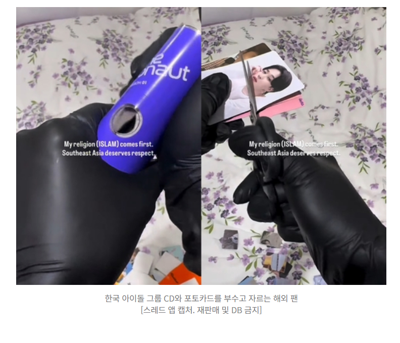 本月22日,Threads用户"si***"上传了一段砸碎或剪断K-POP CD、小卡等后,将残骸装入塑料袋丢弃的视频。