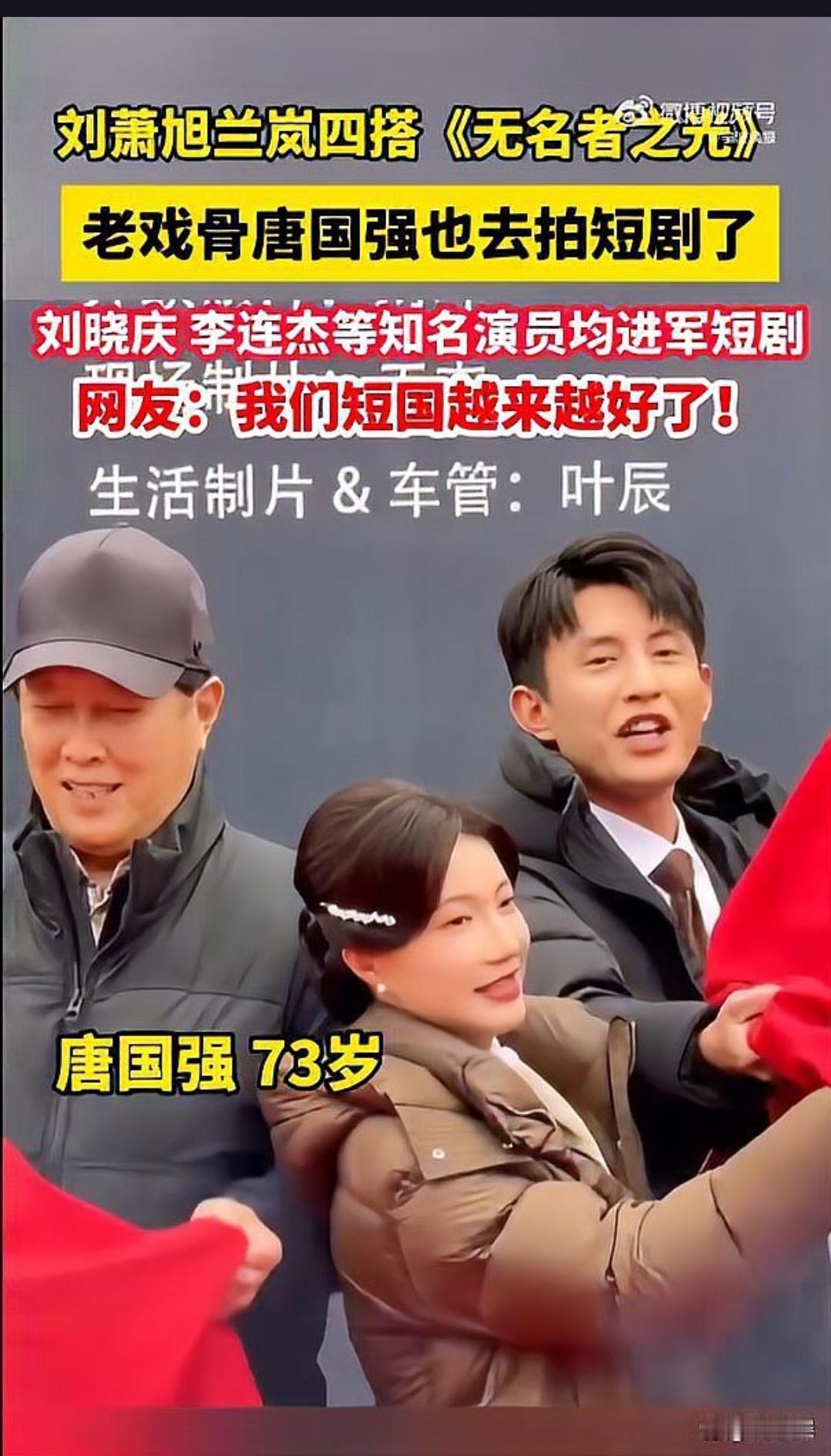 73岁唐国强突然投身短剧,还自创打油诗,这究竟是为何?老艺术家与短剧的碰撞,会擦出怎样的火花? 近日,73岁的唐国强在浙江横店开机拍摄竖屏短剧《无名者之光》,这一举动引发了广泛关注。要知道,唐国强可是“帝王专业户”,他曾在综艺节目上公开批评短剧逻辑混乱,如今却亲自参演,这一反差让网友们纷纷表示困惑。在开机仪式上,唐国强更是即兴创作了四句打油诗,展现了他深厚的文学功底,也让人们对他的转型充满了好奇。此次,唐国强在短剧中扮演一位心怀家国的红色资本家,与许文广、冯雷等老戏骨同台飙戏,被网友们戏称为“短剧国家队”。他的加入无疑为短剧市场注入了新的活力,让观众们对这部短剧充满了期待。同时,这也引发了关于老艺术家是否应涉足新兴媒介的讨论,毕竟短剧与传统的影视剧在表现形式和受众群体上都有着很大的不同。 唐国强投身短剧,是顺应潮流还是挑战自我?他的加入能否为短剧市场带来新的突破?快来评论区发表你的看法,一起探讨老艺术家与新兴媒介的碰撞与融合吧!