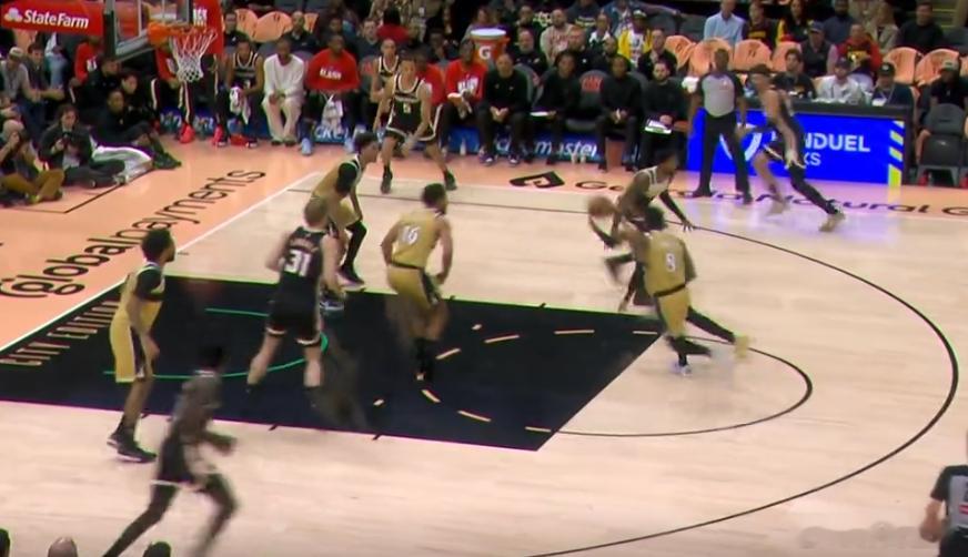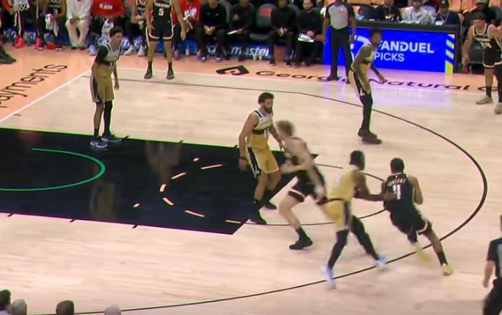 123456基斯伯特弧顶持球借助麦科勒姆设置的 “Ghost Screen”起手启动右路突破,没能凭借速度摆脱掉防守人,于是在对抗后收球转身出手后仰跳投,稳稳命中。