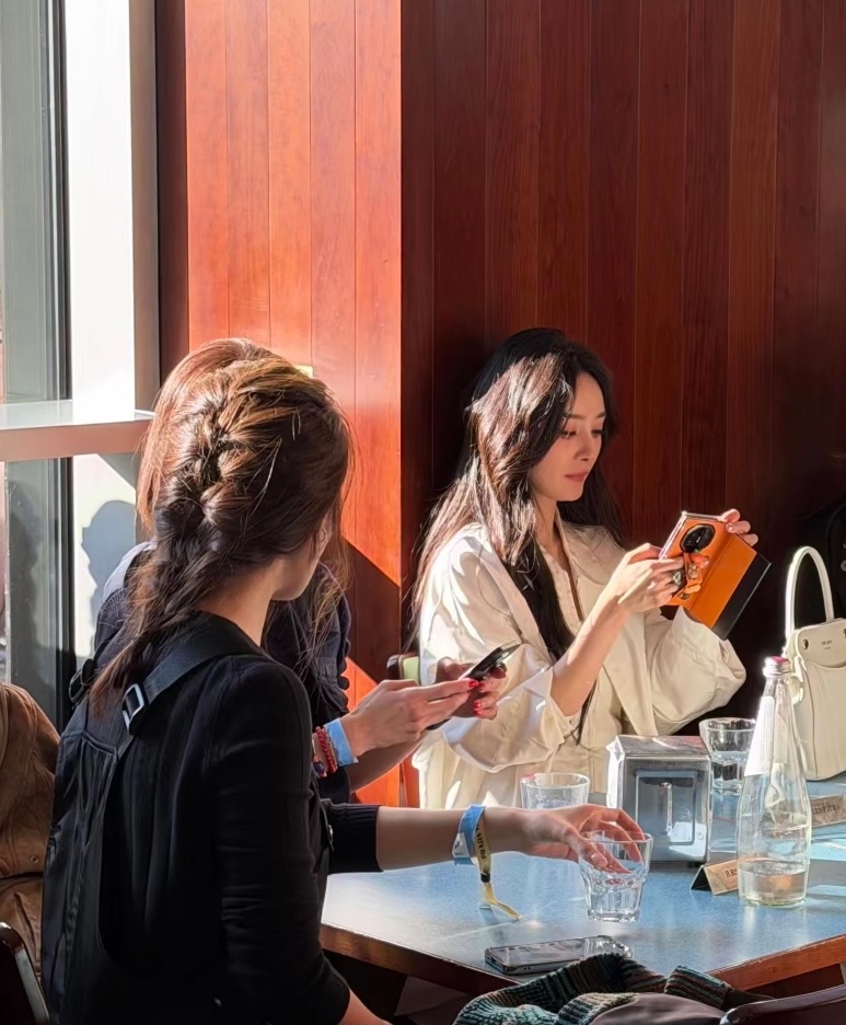 偶遇杨幂秀后喝咖啡米兰街头偶遇杨幂喝咖啡 好松弛的杨幂
