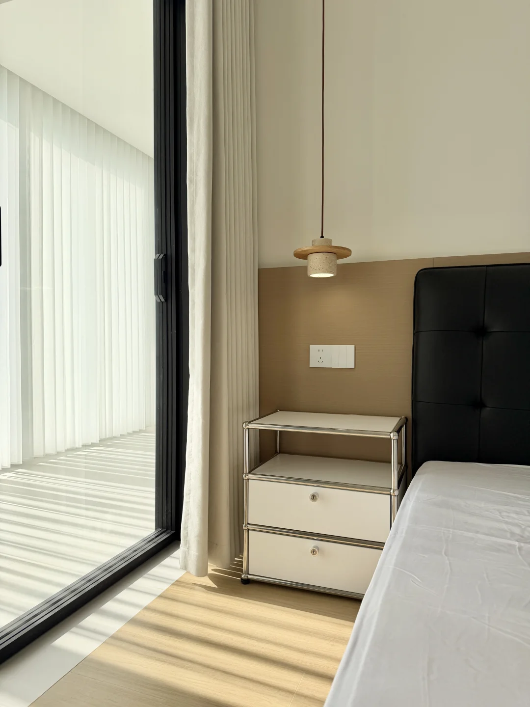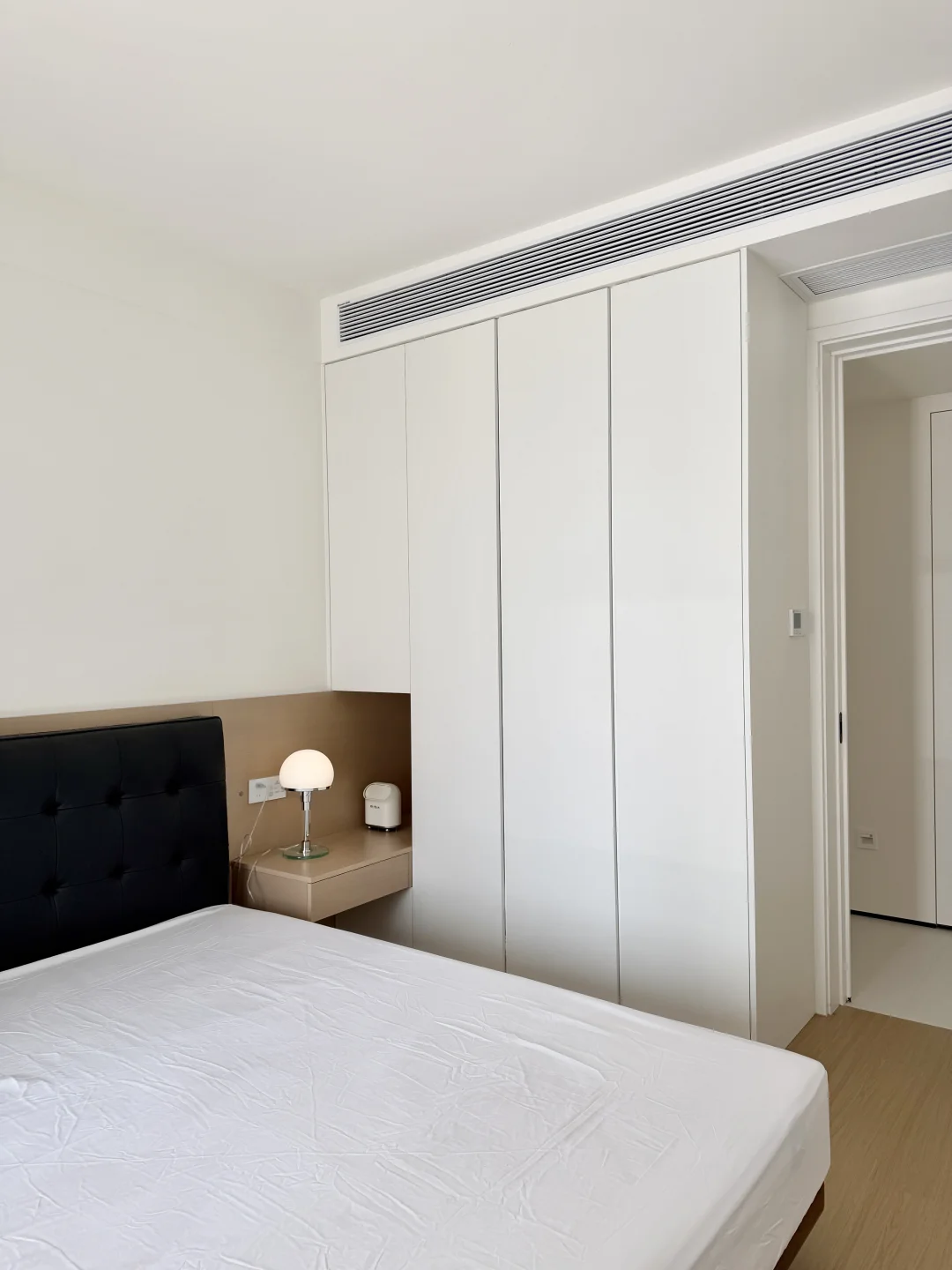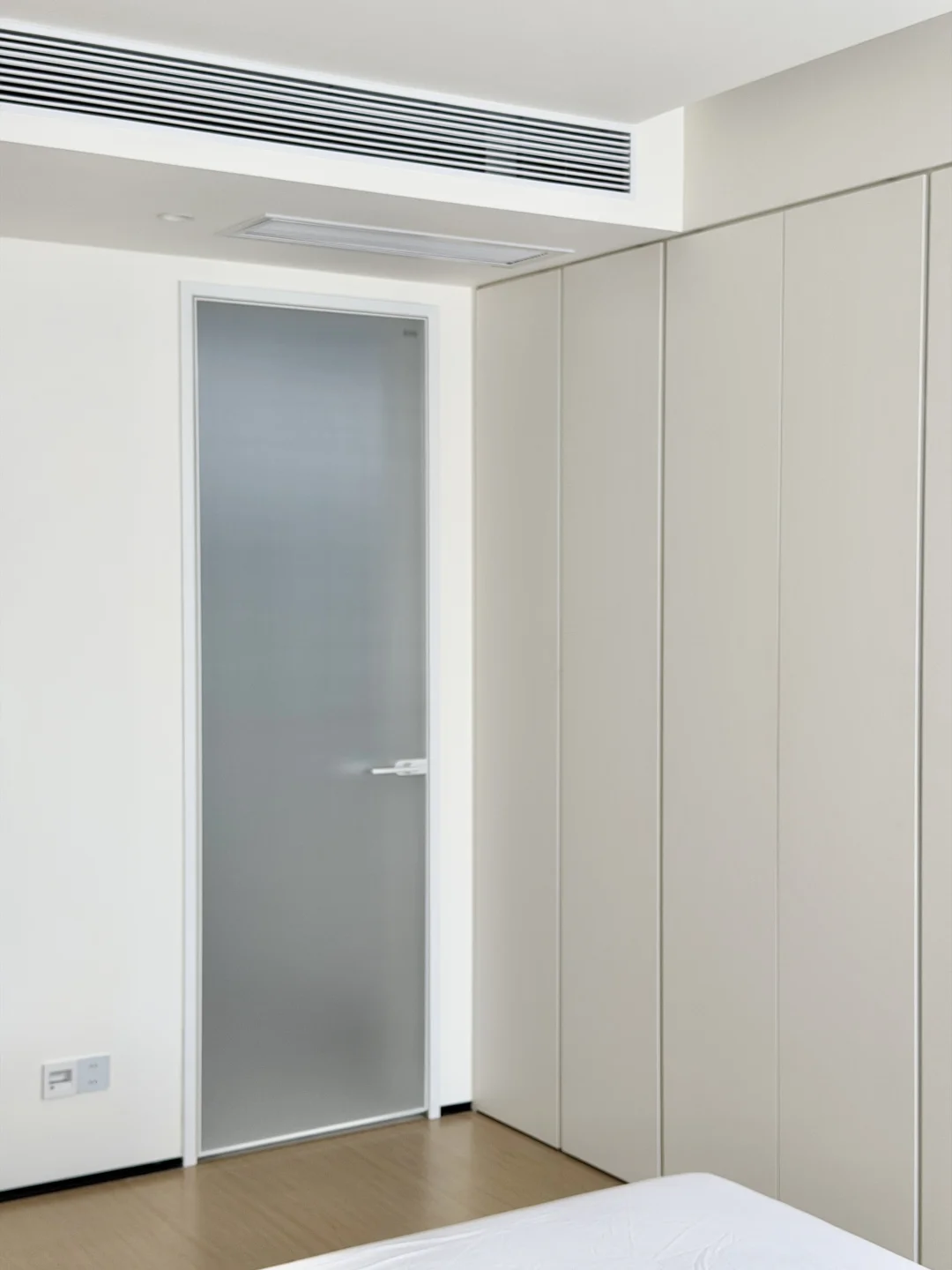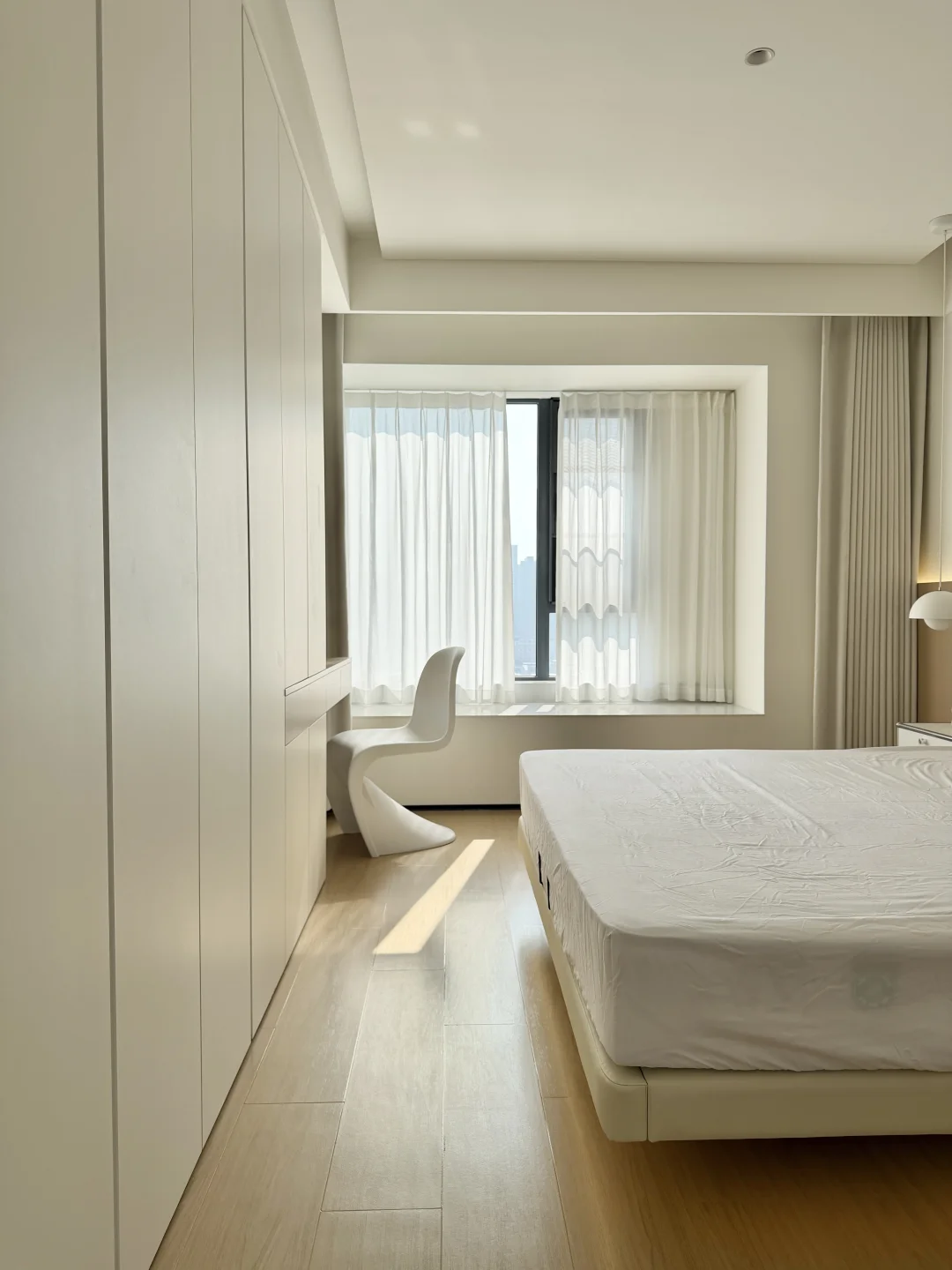 墙顶和衣柜同色系,色系统一直接把极简感拉满。