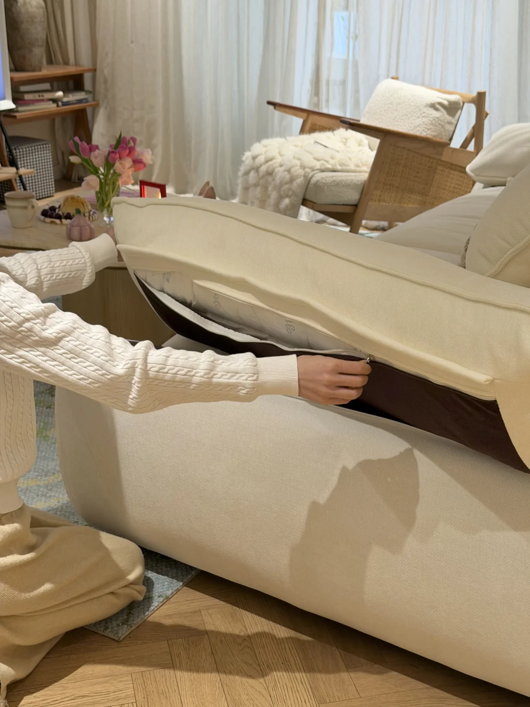 论松弛感还得是布艺沙发,跟我家奶油风太搭了
