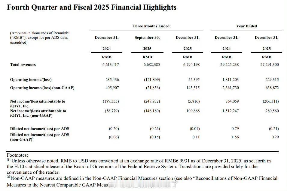 爱奇艺财报出来了,2025年净亏损为2.06亿
