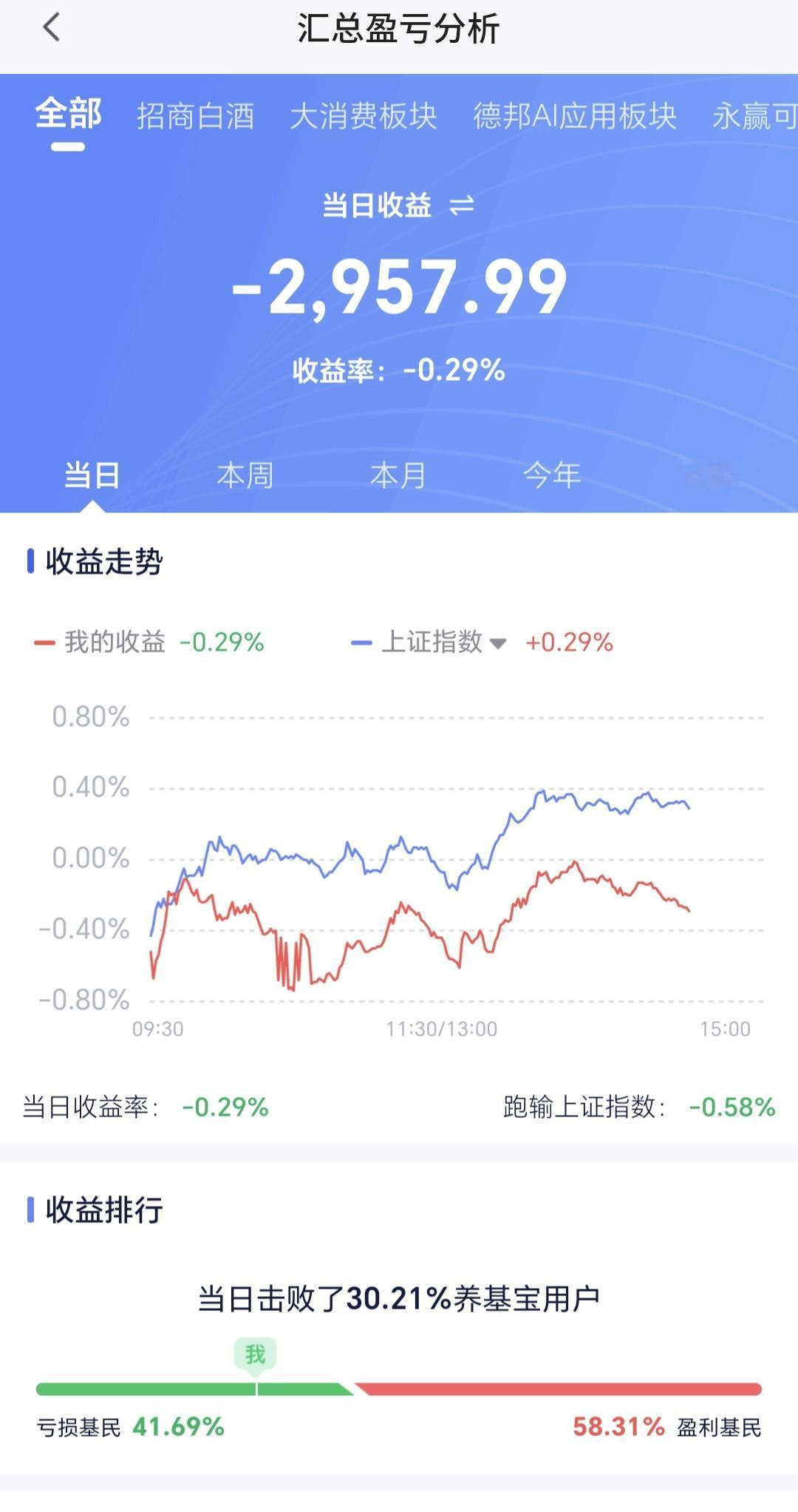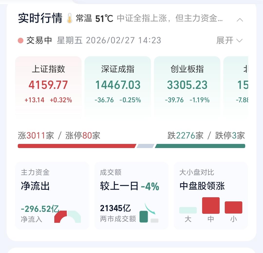 基金:什么情况下会大概率进行再一次止盈 日本和韩国市场今天涨跌不一,日本上涨了0.22%,韩国下跌了0.19%,涨跌幅度都很小。 香港市场今天也是上涨,恒生指数上涨了0.88%,国企指数上涨了0.56%,恒生科技指数上涨了0.70%,上涨幅度都不大。 看下面的截图3,这是上证指数日K线图,今天的上涨并没有能够突破日线级别短期下跌通道的上轨线,下周即使上涨突破,这个短期下跌通道的上轨线也面临着前高4190点的压力,如果不能放量,快速冲过4190点,形成较大级别高点的可能性是很大的,所以,这个地方即使突破了,也不要轻易进场,相对高位的地方谨慎一点是没有错的,这个地方防止被套比挣钱更重要。 看下面的截图4,这是创业板指日K线图,创业板指现在还是处于日线级别短期下跌通道中,就是还是处于日线级别短期下跌趋势中,距离前高3416点也是很近,这里也是需要谨慎的地方。 特别需要提醒的是,整体市场大方向是向上的,长牛慢牛的观点并没有变化,牛市当中也会有调整,牛市当中的调整也是需要防范的,如果你不能踏准节奏,牛市里面也是有许多人亏损的。 再来看一下盘面的情况,市场上涨3000多家,下跌2200多家,涨停80家,跌停3家,两市累计成交21345亿,相比于昨天同期数量了4%,主力资金净流出296亿。 整个市场上涨幅度最大的三个板块是:稀土永磁板块,煤炭板块,钢铁板块,下跌幅度最大的三个板块是:Cpo板块,通信板块,双创50板块。 整个基金市场,上涨11434家,下跌7452家,没有上涨幅度超过5%的基金,也没有下跌幅度超过5%的基金。 看下面的截图9,这是今天加仓人数和减仓人数,今天加仓人数为12275445人,今天减仓人数为3576339人,加仓人数超过了减仓人数。 看下面的截图10,这是创新药板块日K线图,现在的位置处于日线级别上涨通道中,距离上涨通道的下轨线很近,近期观察会不会跌破这个上涨通道的下轨线,所有上涨通道的下轨线附近,进场的性价比都是比较高的。 看下面的截图11,这是创新药板块周K线图,本周的下跌到了周线级别上涨通道下轨线上,到现在为止并没有有效破位周线级别上涨通道的下轨线,创新持有的人在这个位置上是只进不出。 看下面的截图12,这是传媒游戏板块日K线图,昨天下跌跌破了日线级别上涨通道的下轨线,今天是在下轨线的下方震荡,短线持有的人需要注意风险,这个地方暂时不考虑进场。 看下面的截图13,这是传媒游戏板块周K线图,现在的位置处于周线级别上涨通道中,距离上涨通道的下轨线比较远,长线持有的人可以继续持有,除非跌破这个上涨通道的下轨线,才可以考虑要不要止盈出来观望。 持有基金现在盘中估值亏损了2957元,盈利金额最大的三个板块是:创新药板块,大消费板块,证券板块,亏损金额最大的三个板块是:5G板块,创业板指,沪港深消费。 今天收盘之前还是观察能不能收在4152点上方,只要能够收在这个点位之上,我们这一次止盈的可能性就很大,今天究竟应该怎么办?我会在评论区留言。 花1秒钟点赞,花30秒钟评论,就是对我最大的支持,谢谢大家的支持。