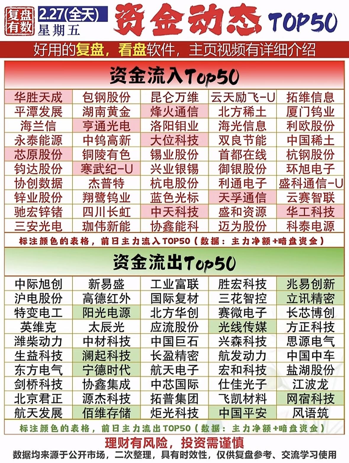 2月27日收盘暗盘流入TOP25的股票,简直是投资界的“潜力宝藏”。午盘时,华胜天成以15.5亿元的净流入成焦点,成交额达125.85亿元,换手率逼近40%,抢筹大战相当激烈。拓维信息也不逊色,净流入13.8亿元,最新价36.52元,成交额超30亿,凸显科技板块受宠。 计算机、有色金属和钢铁板块成“吸金大户”,杭钢股份涨停带动钢铁板块,有色金属里小金属概念涨势如虹。不过,投资也有风险,像2021年底部分医药股,资金撤离后股价回落。2月27日大位科技和川润股份虽净流入过亿,但换手率高,投机风险大。这25只潜力股,机遇与风险并存啊!