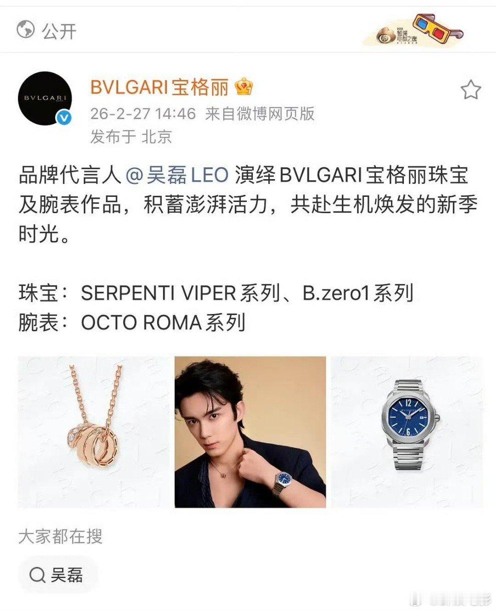 宝格丽认领吴磊宝格丽官博认领吴磊啦宝格丽发了吴磊宝格丽力挺吴磊
