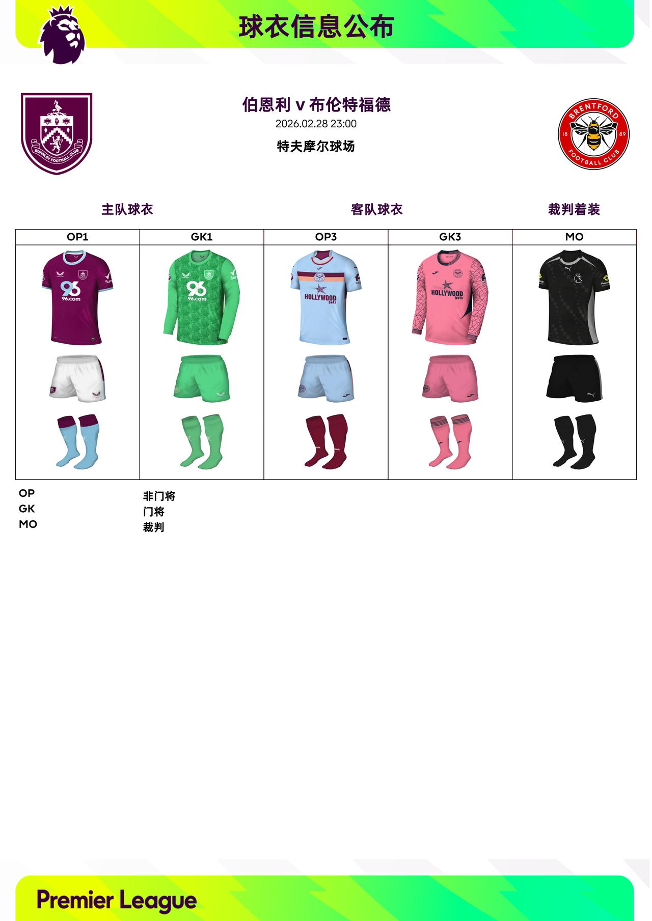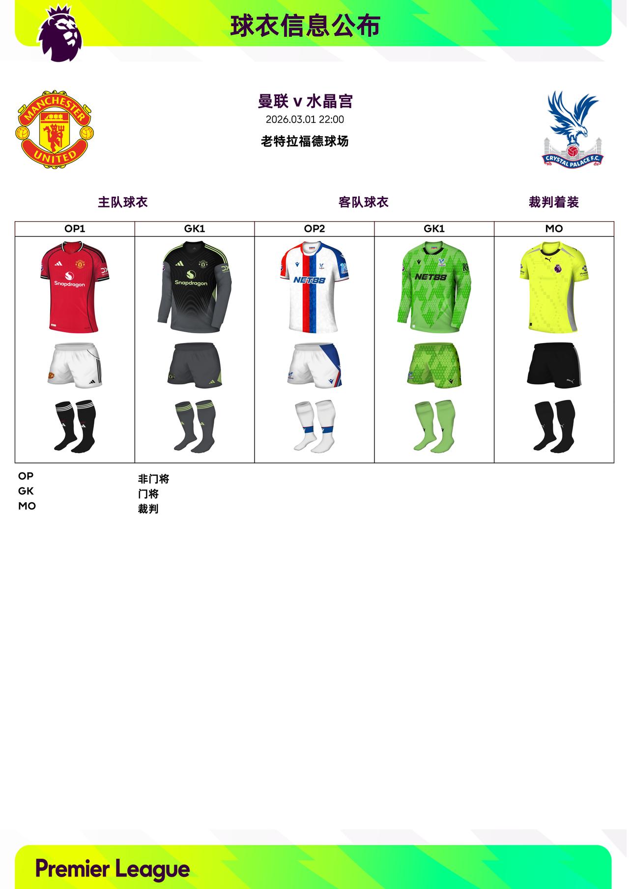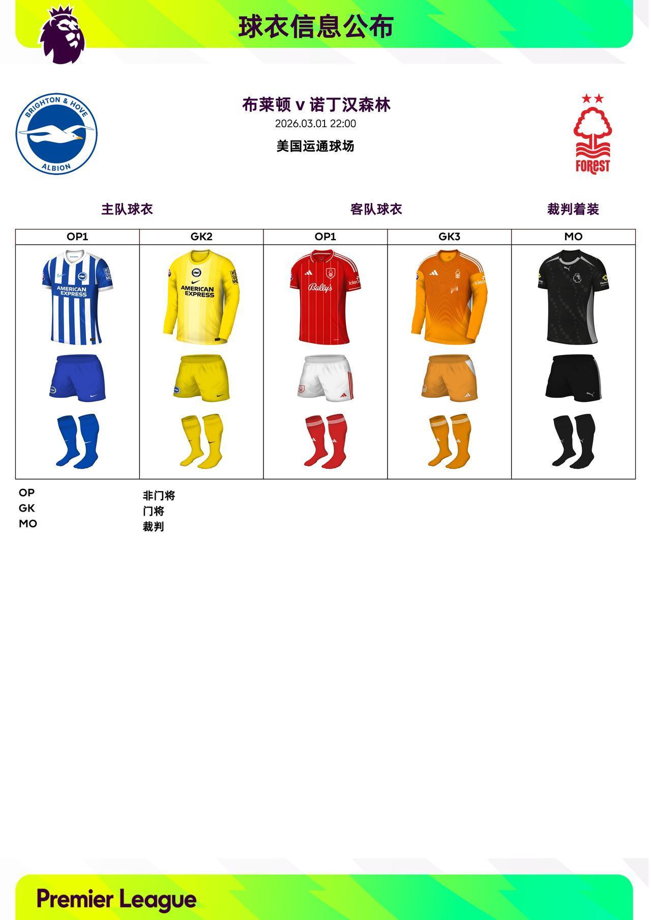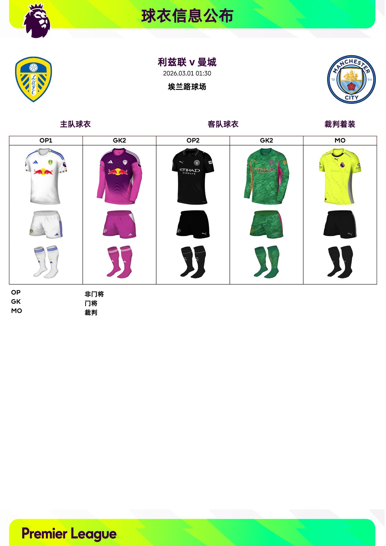 2025/26赛季英超联赛第28轮球衣信息: ◉ 焦点战——阿森纳 v 切尔西 ,双方均穿主场球衣