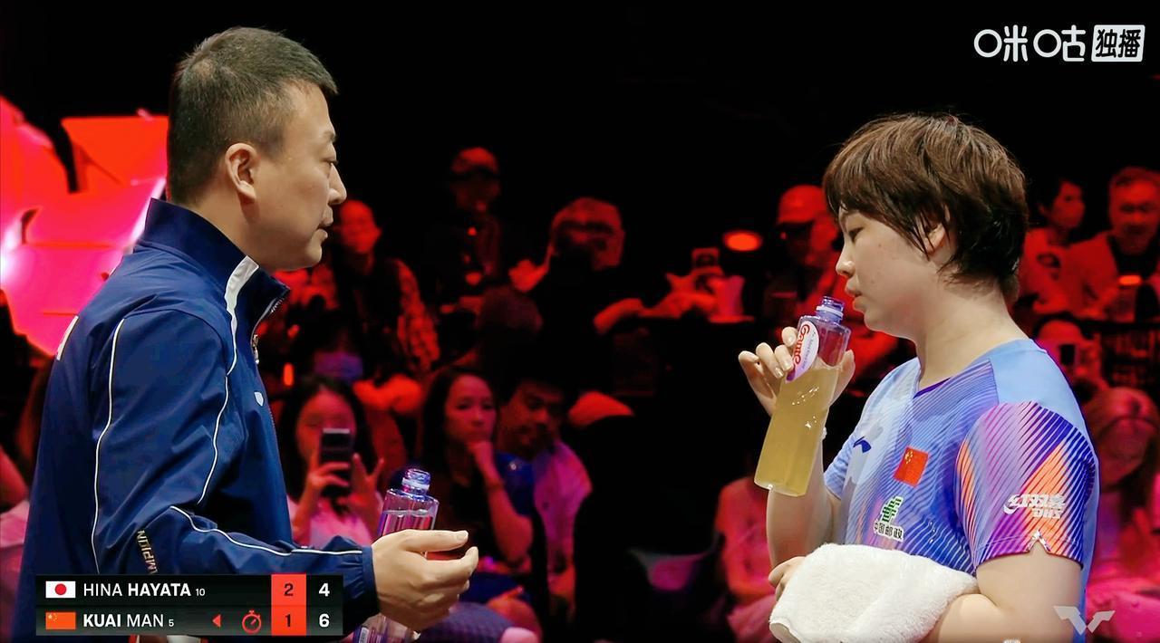 马琳指导蒯曼的话,被全球直播了! 这次新加坡大满贯一点也不顾及隐私了, 教练指导球员, 不应该被收音! 第四局 蒯曼6:1开局, 早田追到了4:6 蒯曼叫了暂停。 马琳说: 不要因为拧拉失误一个, 就不敢上手了。 回来之后, 蒯曼继续长球打, 10:7拿到局点, 11:7拿下。 前四局两人打成了2:2平。