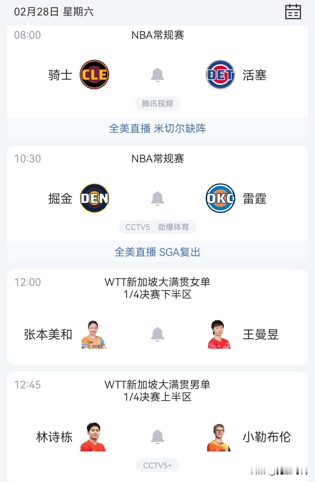 明日女排季后赛天津女排战上海央视直播 乒乓1/4决赛 骑士战活塞等焦点赛事关注