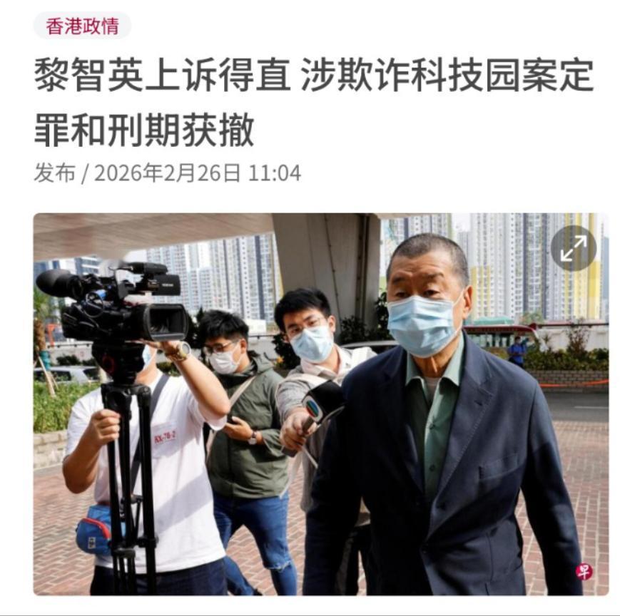 黎智英 “上诉得直” 定罪刑期被撤销,港府不服:接着告 2 月 26 日,身在大牢里边的黎智英又不老实了,他的女儿前脚想道德绑架谷爱凌没得逞,后脚律师团就玩起了法律技术活儿。 2 月 26 号香港高等法院这一判,欺诈案上诉得直,定罪和五年九个月的刑期给撤销了,看起来好像是赢了,但实际上这赢的有点虚,纯属法律条文上的技术性操作。 明眼人都看得出来,这不是法庭认他无罪,只是在租契的细节条款里找到了可钻的空子,把疑点利益给到了被告而已。 他当年违规占用将军澳工业邨的优惠场地,把公共福利拿来给自己的私人公司牟利,侵占公共资源的事实,早就铁证如山,根本赖不掉。 这边刚靠着文字游戏捞到一点喘息的空间,黎智英的家人就急着跳出来作妖。 他女儿专门跑到美国媒体发公开信,点名道姓拉谷爱凌下水,想用所谓的人道主义绑架公众视线,妄图给监狱里的黎智英造势。 这场碰瓷闹剧从一开始就注定翻车,谷爱凌从头到尾没有任何回应,根本不接这个脏套路。 香港特区政府更是不到 24 小时就直接回应,把惩教署 24 小时医疗保障、在押人员身体状况稳定的事实摆上台面,当场戳穿他们的卖惨谎言。 想把体育明星拖进政治浑水,替乱港首恶洗白,既打错了算盘,也侮辱了所有中国人的智商。 黎智英一家的这番操作,除了暴露自己的黔驴技穷,没有任何实际意义。 很多人被这起上诉案带偏了视线,忘了黎智英身上最核心、最严重的从来都不是这起欺诈案。 他真正的重罪,是勾结外国势力、危害国家安全,这桩案子才是压垮他的决定性巨石。 整个案件审理历时 156 天,法庭审查了 2220 项证物,核对了超过 80000 页文件,14 名控方证人当庭作证,证据链完整到无懈可击。 最终法院裁定他串谋勾结外国势力、发布煽动刊物等多项罪名成立,直接判处 20 年监禁。 这 20 年的刑期,是香港法治给出的正义答案,也是他祸乱香港应得的下场。 2019 年黑暴期间,他坐在幕后当金主、当指挥,煽动暴力、制造对立,把好好的东方之珠搅得鸡犬不宁。 那几年香港 GDP 大幅下滑,旅游业直接损失上千亿,上万间商铺倒闭,无数普通市民失去工作、家庭破碎。 街头被纵火、地铁被破坏、路人被殴打,这些满目疮痍的画面,背后都有黎智英的黑手在推动。 他甘当外部势力的马前卒,频繁密会外国官员,乞求外部势力制裁自己的国家,出卖香港与国家利益,这样的恶行,早就被全体市民看在眼里、记在心里。 现在靠着一个小案子的技术性改判就想造势洗白,简直是痴心妄想。 香港律政司的态度干脆又强硬,直接宣布会继续上诉,绝不允许乱港分子靠法律花招逃避应有的惩罚。 香港的司法体系有着完整的上诉机制,一次判决从来不是最终结果,法治的底线必须守住,正义的结果必须到位。 外部势力和西方媒体想借这起小案子炒作抹黑香港法治,纯属白费力气,改变不了任何既定事实。 黎智英如今还被关押在监狱里,就算欺诈案的刑期被撤销,那 20 年的国安法刑期依旧牢不可破。 他这辈子最好的结局,就是在铁窗里度过余生,为自己的所作所为付出代价。 从呼风唤雨的乱港金主,到人人喊打的阶下囚,黎智英的下场,就是所有反中乱港分子的最终归宿。 港府的持续上诉,更是给所有心怀不轨的人敲响警钟:香港绝不是法外之地,任何危害国家安全、破坏社会稳定的行为,都逃不过法律的严惩。 不管是玩法律文字游戏,还是搞舆论碰瓷炒作,在绝对的证据和坚定的法治决心面前,都只是不堪一击的把戏。 黎智英的闹剧该收场了,他剩下的人生,只能在监狱里为自己的罪恶买单,永远被钉在历史的耻辱柱上。
