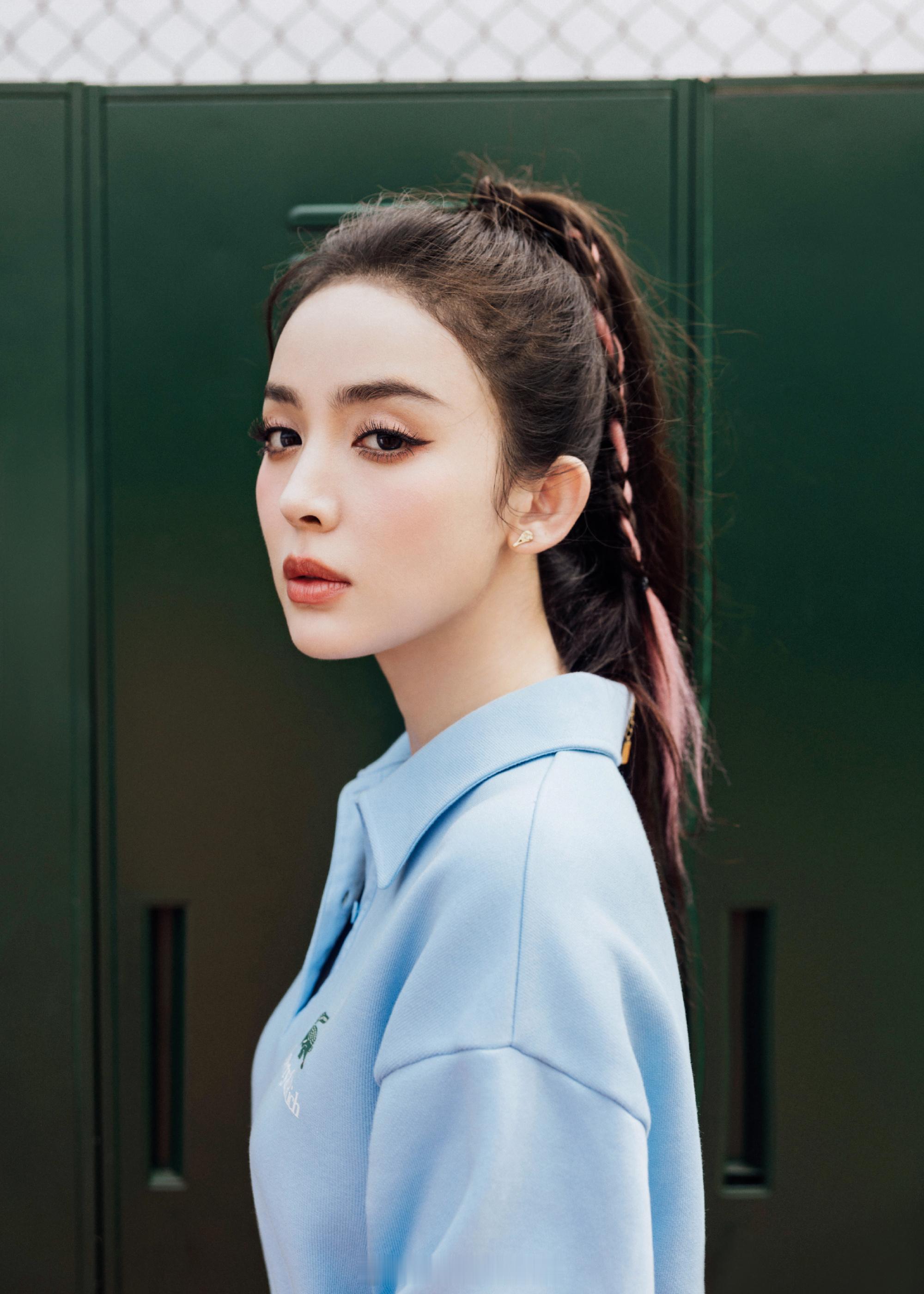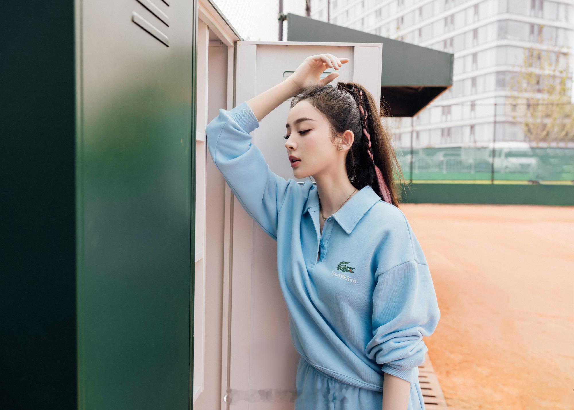 古力娜扎淡蓝运动风穿搭