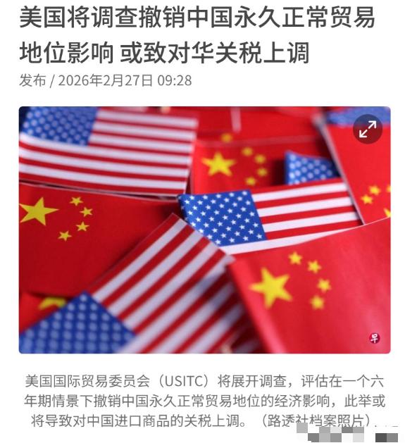突发!仅隔一天,美国又变了,将撤销中国永久正常贸易国 2月26日,美国国际贸易委员会称,他们将展开调查,评估在一个六年期情景下撤销中国永久正常贸易地位的经济影响,目前调查已经启动将在8月21日公布结果。 什么是“永久正常贸易国地位”?说白了,它还有个更通俗的名字叫“永久最惠国待遇”,简单说就是中美贸易往来的“通行证”。 2000年美国国会通过法案,2001年正式实施,和中国加入WTO同步,从此中国商品出口美国,就能享受美国“协调关税表”里最优惠的税率,平均下来也就3.5%左右,流程也规范。 可一旦撤销,中国就会被归入古巴、俄罗斯等少数国家的行列,享受的关税直接飙升到平均40%以上,再叠加美国之前加征的额外关税,最终关税可能会达到60%左右,这对中美贸易来说,无疑是一记重击。 可能有人会问,美国好好的,为啥突然又要搞这一出?其实这不是空穴来风,也不是美国第一次炒作这个话题了。 自从特朗普再次当选后,美国共和党议员就频频发力,不仅有议员提交相关法案,还有智库给出所谓的“撤销路线图”,表面上喊着“保护美国产业和工人”,实则背后全是政治算计——一方面想通过这种极限施压,逼迫中国在一些领域让步。 另一方面,也是为了讨好国内部分选民,收割政治资本。但大家要明白,这次只是启动调查,不是已经撤销了,调查结果要到8月21日才公布,而且这份调查只是为国会未来立法提供数据支持,能不能真正落地,还很难说。 咱们先说说最现实的一点:美国真要是撤销了,最先受伤的其实是它自己。很多人觉得美国是超级大国,扛得住后果,可事实恰恰相反。 一旦撤销中国永久正常贸易国地位,美国在几年内可能会失去几十万个工作岗位,GDP损失更是高达上万亿美元。 更直接的是,美国的农民和企业早就离不开中国市场了——美国大豆、棉花的一半以上出口都依赖中国,苹果、高通等科技巨头,中国市场更是它们的营收支柱。 要是撤销了,这些企业的利润会暴跌,股价可能崩盘,农民的农产品也会大量积压,最后买单的还是美国的普通民众和企业,完全是“杀敌一千、自损八百”的操作。 而且,撤销这件事本身,实操难度也极大。很多人以为总统一句话就能搞定,其实不然,撤销必须通过美国国会立法,需要两院过半投票通过,而美国国内的企业联盟、农业协会都会坚决反对,毕竟谁也不想放弃中国这么大的市场。 除此之外,WTO早就明确规定,成员之间必须无条件给予对方最惠国待遇,美国单方面撤销,就是赤裸裸的单边主义和贸易保护主义,违反了国际规则,会遭到全球各国的谴责和反制,最终损害的还是美国的国际信誉。 还有一点大家不用过度担心,中美贸易早已深度绑定,“你中有我、我中有你”,不是一句“撤销”就能彻底切断的。 2024年,中美双边货物贸易额接近6883亿美元,是1979年建交时的275倍,这种深度绑定,背后是两国产业的互补性——中国是全球最大的消费市场和制造业大国,拥有完整的产业链;美国拥有先进的科技和高端制造,双方合则两利、斗则俱伤,这是过去几十年反复证明的真理。 当然,咱们也不能掉以轻心。虽然撤销的可能性不大,但中国早就做好了应对准备。 这些年,我们一直在拓展全球贸易朋友圈,深化与欧盟、东盟等国家和地区的合作,加快推进RCEP实施,降低对美国市场的依赖;同时强化国内大循环,推动产业升级,在高科技领域突破技术封锁,这些都是我们应对外部不确定性的底气。 对咱们普通人来说,就算真的撤销,可能部分进口商品价格会略有上涨,但影响有限,不用过度焦虑。 说到底,美国这次启动调查,更多是一场政治表演,看似来势汹汹,实则处处是制约。全球供应链早已深度融合,没有任何一个国家能独善其身,美国的单边主义和贸易保护主义,最终只会反噬自身。