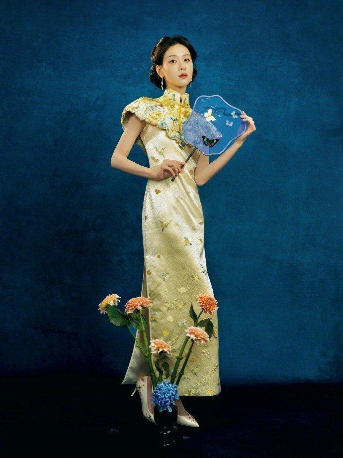 陈都灵演绎非遗美学锦缎裁云肩,宝蓝落菊影。把东方美学的贵气焊在了身上,金丝绣纹流转着非遗的流光,蝶舞蹁跹间,是一眼万年的古典韵致。淡妆浓抹总相宜,好似行走的中式美学范本。陈都灵