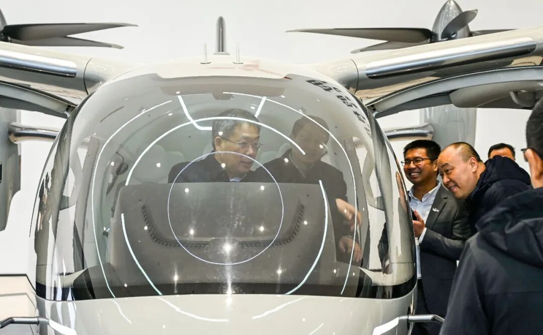 在芜湖市湾沚区,上海时的科技eVTOL制造总部基地正加紧建设。展厅里,自主研发的E20电动垂直起降飞行器赚足了目光,大家纷纷登机体验,过了一把“飞天”瘾。