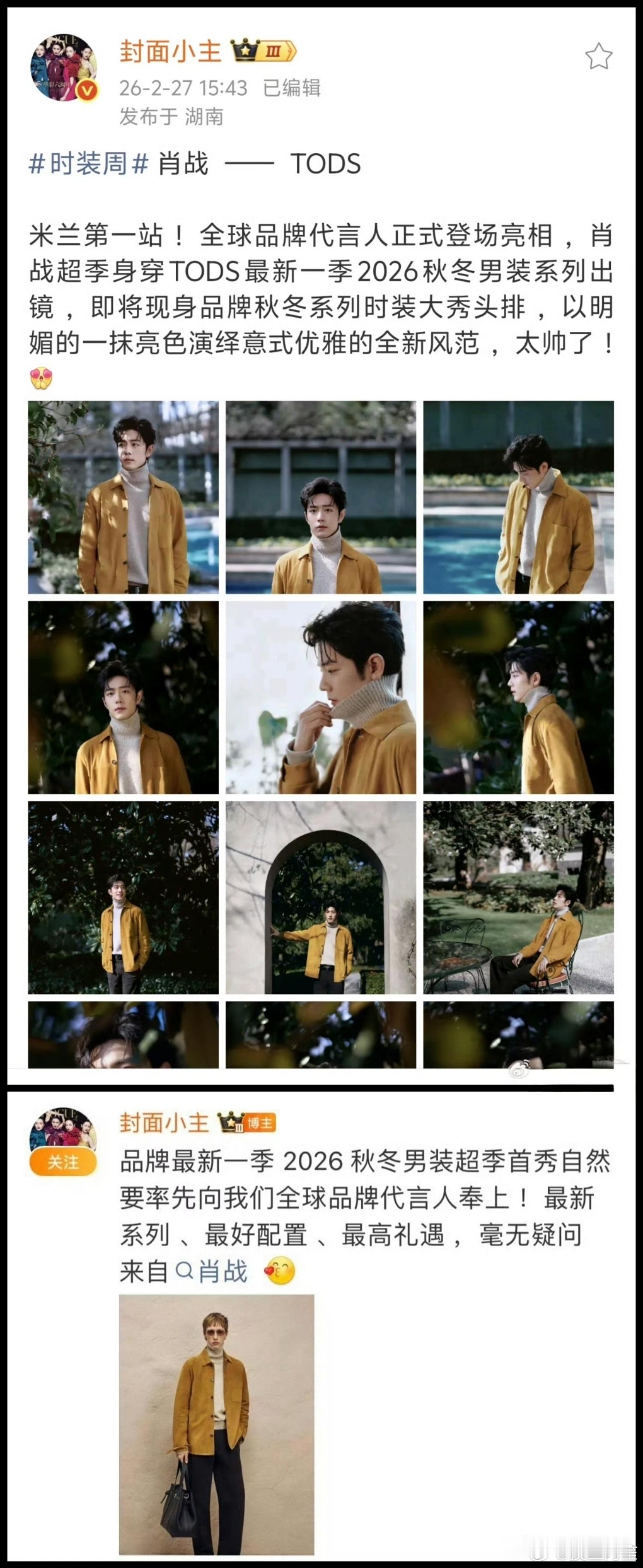 肖战米兰时装周首套造型来了!TODS全套超季首穿,待遇完全是不必多说的最好!期待