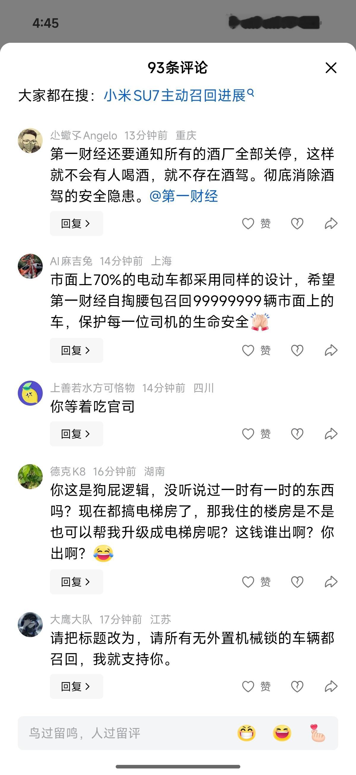 感觉有些媒体的观点总是比较新颖,还有建议小米37万辆车召回的,不过网友看得很清楚,督促媒体把所有门把手有安全隐患的车都召回~
