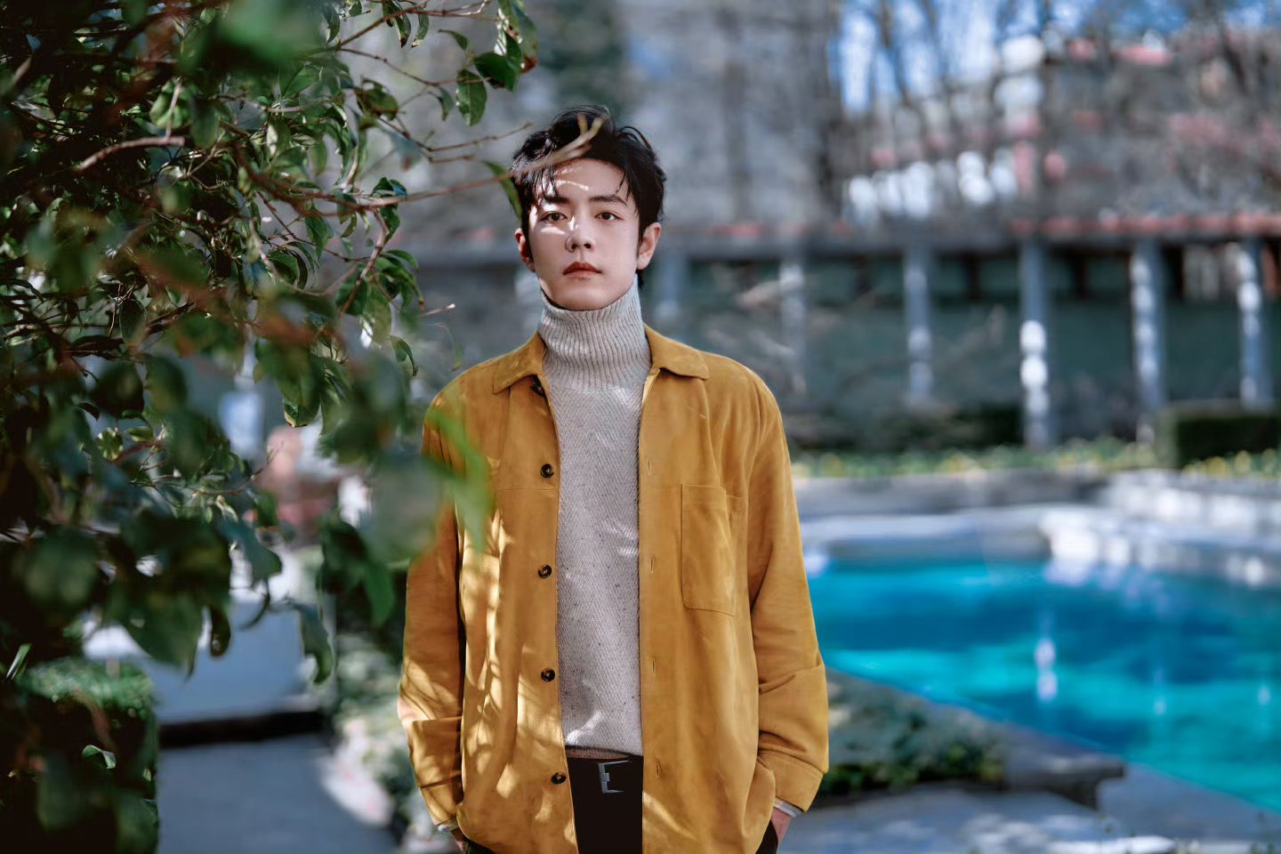 肖战暖黄麂皮外套好帅的肖战啊啊啊肖战TODS看秀造型图