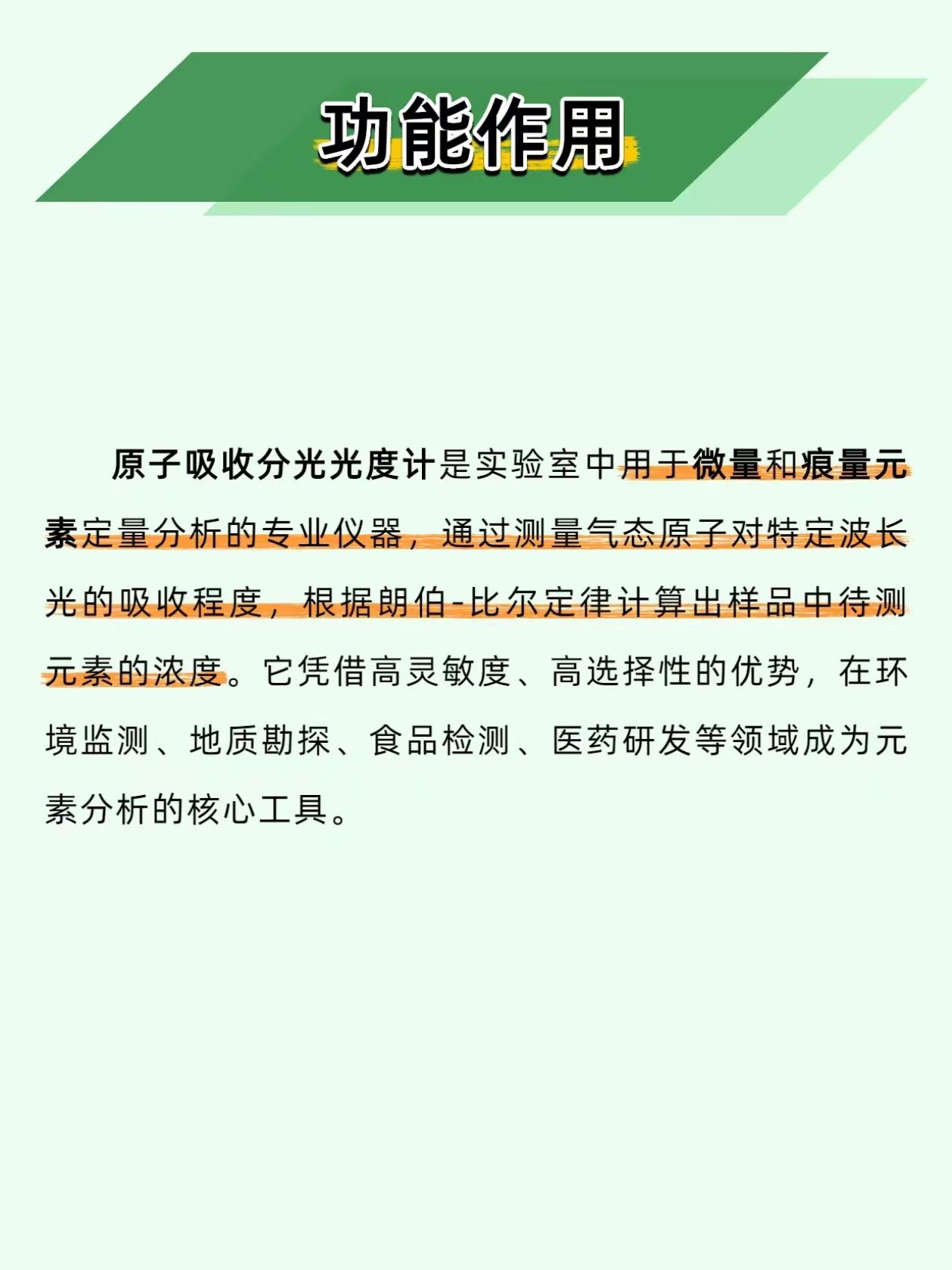 测重金属还在靠老方法?原子吸收分光光度计直接精准到纳克级!😱 食品里的镉、茶叶里的铅、水里的汞,这些痕量重金属用传统方法测不准还费时间?原子吸收分光光度计才是元素分析的 “火眼金睛”,高灵敏、高选择,70 多种元素全能测! ✨ 核心优势,直接封神! 灵敏度拉满:火焰法测到微克 / 升,石墨炉法直接到纳克 / 升,痕量污染也逃不过 选择性超强:每种元素只认自己的 “专属波长”,复杂基质也不干扰,不用复杂分离 操作躺赢:自动化程度高,前处理简单,液体直接进样,固体消解后就能测 结果稳如老狗:重复性好,多次检测偏差小,数据可靠不翻车 📌 避坑指南,测不准全因踩这些! ❌ 样品前处理不彻底:消解不干净或有污染,数据直接飘! ❌ 空心阴极灯老化或选错:波长不准,检测结果全是假的! ❌ 原子化条件乱调:火焰温度、石墨炉程序不对,原子化效率低,信号弱! ✅ 定期校准仪器:用标准溶液校准曲线,确保结果可追溯! 不管是环境监测里的重金属排查、食品里的安全检测,还是医药研发里的杂质控制,这台仪器全拿捏! 你做元素分析时遇过最头疼的问题是什么?评论区唠唠!👇