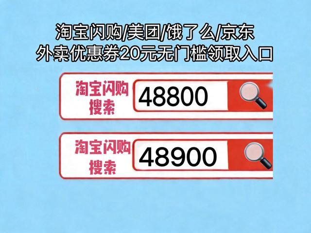 淘宝闪购外卖叠加券淘宝闪购搜[48800]淘宝闪购外卖优惠券口令免费领取淘宝闪购搜[48900],美团外卖优惠券领取口令是美团APP搜[惊喜666]美团神券最新口令