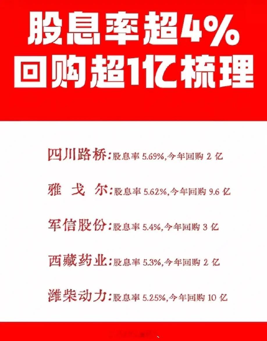 股息率超4%+回购超1亿!高股息+真金白银回购,这15家公司值得重点关注!从航运龙头中远海控(股息率10%,回购14.83亿)到服饰巨头雅戈尔(回购9.6亿),再到能源、基建、制造等多个领域,这些公司用真金白银回馈股东,彰显了对自身发展的信心。