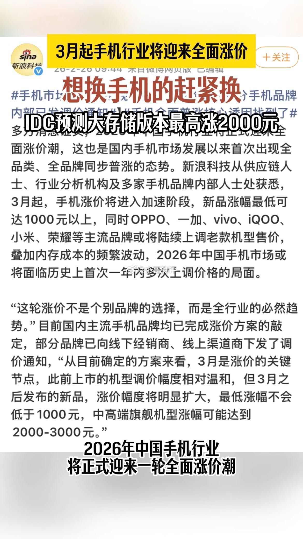 2026手机要集体涨价,你还敢等吗?最近想买手机的注意了!一个