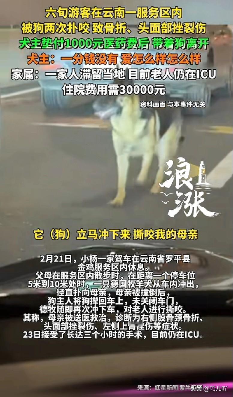 总算看出来了,恶狗伤人事件永远禁止不了,而且只会越来越多!新出台的《治安管理处罚法》中对不规范养狗行为的处罚更是一纸空文,连震慑作用都起不了! 就在刚刚,又看到某媒体报道,湖南省株洲市一位年近九旬的老奶奶又遭到了恶狗的撕咬,而且伤情非常严重。 视频也记录了老奶奶被恶狗咬伤的过程,真的是隔着屏幕都为奶奶感到疼。 2月21日,也就是大年初五晚上,老奶奶独自在小区里正常出行。突然一只大型犬径直飞奔而来,直接将她扑倒在地后,在奶奶的身体上疯狂撕咬。 遭遇这样一条大狗的攻击,不要说是快九十岁的老人,就算是年轻力壮的小伙子也是很难摆脱吧。 结果可想而知了,老奶奶身体多处被咬伤,最严重的地方骨头都露出来了。送医后,一共缝了30多针。大家想想,老人得受了多少罪吧! 据老人的女儿讲,这条恶狗是惯犯,在奶奶之前已经咬伤两人,而且还咬死两只鸡一条小狗。 所以说,如果新出台的整治不文明养犬条例真的有效,还可能让同一条狗连伤三人吗? 现实情况就摆在眼前,有一部分养狗人根本没有社会公德,更视法律法规于不顾,故意遛狗不拴绳,而且狗咬人后不愿承担责任。 仅春节期间,媒体报道出来的恶狗伤人事件就已经三起了。 除了湖南株洲这起事件外,2月21日,云南省罗平县金鸡服务区里一位返城的六旬老人被一位车主的狗咬伤,光手术费等就花了三万多。狗主人不愿意承担责任,给了一千元就不管了。 另一起就是2月25日在四川省南充市西充县的广场上,一条未拴绳的恶犬冲入人群,连续扑咬多名儿童。 可以毫不夸张地说,全国每天都有多起恶狗伤人事件发生。可是法律法规如此健全的今天,却始终杜绝不了此类事件的发生,真是让人太无语了! 有很多人认为,是北京西高地的李女士打赢了狗官司,让不良养狗人更肆无忌惮,觉得即使遛狗不拴绳、狗咬人也不能把他们怎样。 还有人觉得,受宠物经济的影响,不可能禁止养狗或者对养狗者做过多限制,也是导致某些养狗人为所欲为的原因。 那么,我想代表所有怕狗、厌狗的人们问一句:在这个社会里,到底人重要还是狗重要?不良养狗行为是真的治理不了,还是不想治理? (信息来源:法直播、搜狐新闻、新黄海)