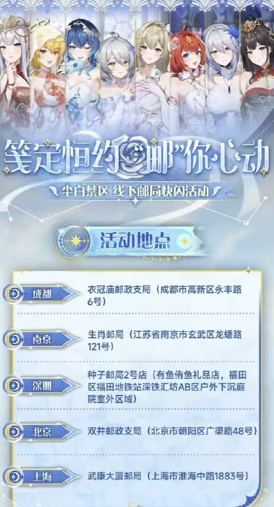 2月24日,游戏“尘白禁区”微博发布消息称,“尘白禁区”游戏联动中国邮政推出线下邮局快闪活动,“笺定恒约”邮政联名纪念礼盒也将同步限量发售。