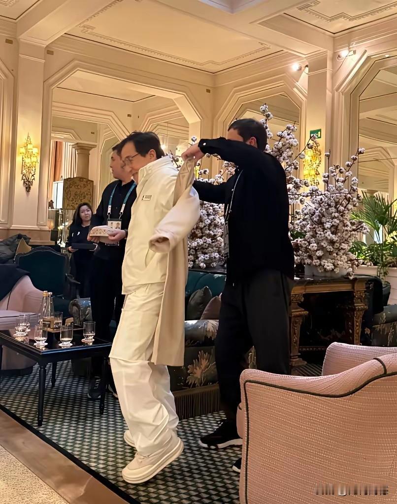 据说这是成龙大哥现身意大利留下来的照片,莫非成龙大哥过春节出去溜达溜达,散散心,从照片来看,成龙大哥一点也不老,精气神还是那么好,穿着打扮都非常的自然,穿的也非常休闲,站在成龙大哥身边的这个小伙,身材是够高的了,目测超过一米八了!