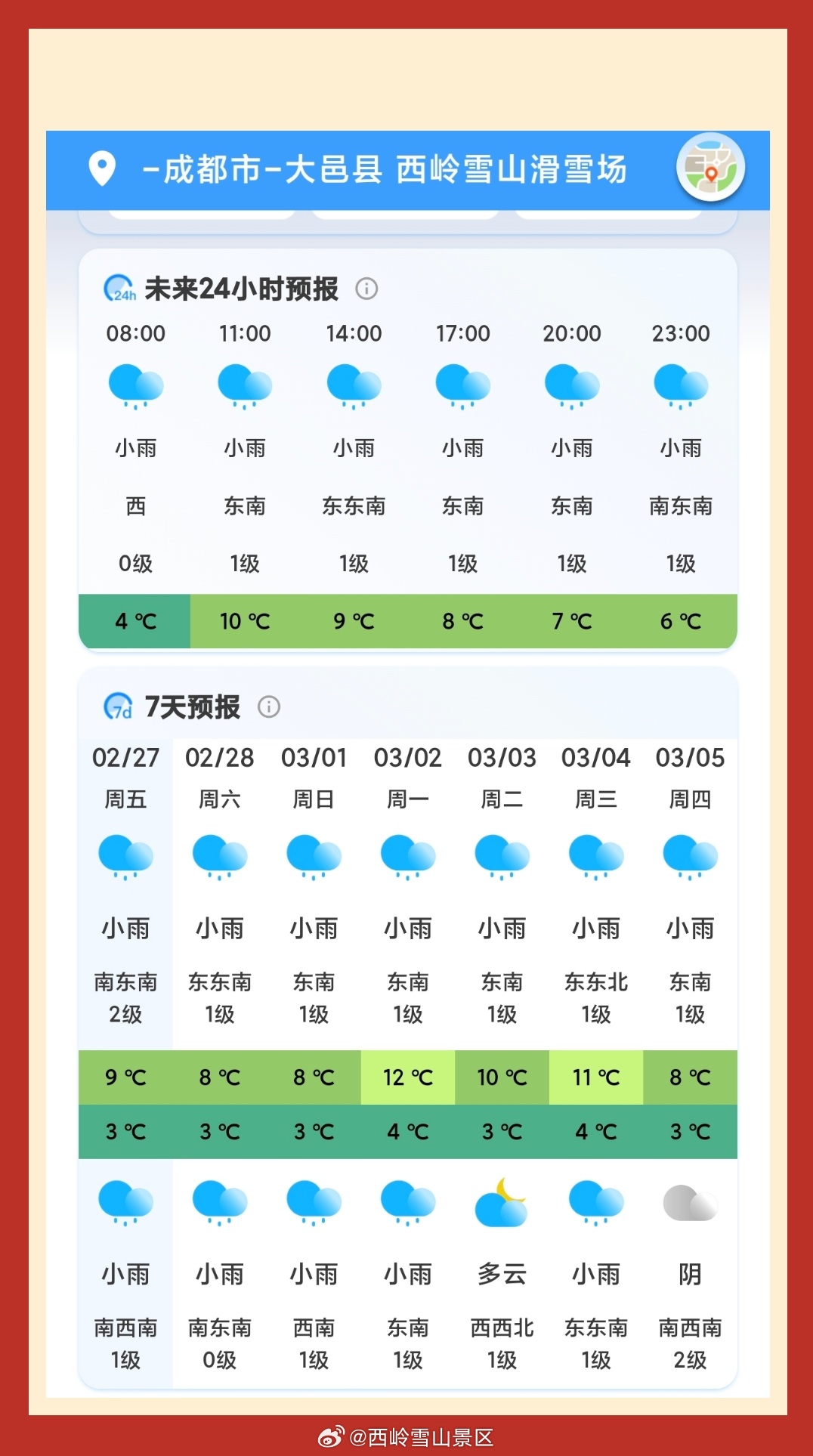 西岭雪山2月28日(十二)气象预报#西岭雪山#