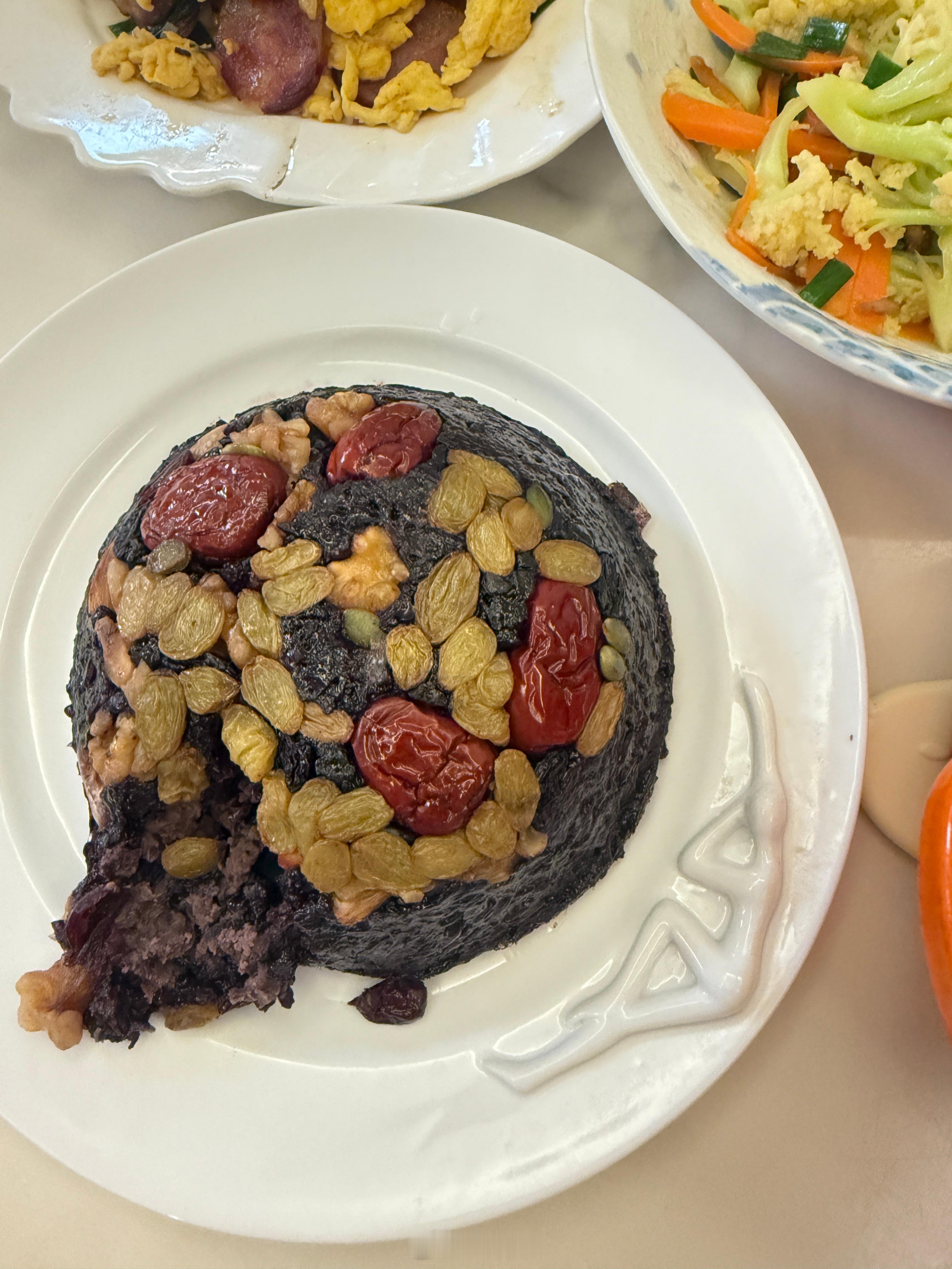 主食是杂粮粥,所以阿姨又蒸了八宝饭,好吃但没必要,因为我月底要95斤