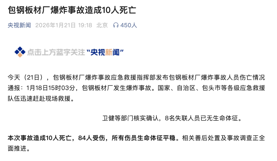 2月27日,在应急管理部召开的新闻发布会上,谈及去年全国发生的9起重大事故和一些典型涉险事故的教训时,应急管理部调查统计司司长李豪文,披露了今年1月18日内蒙古包头市包钢板材厂爆炸事故原因,以及去年以来多起事故的原因。