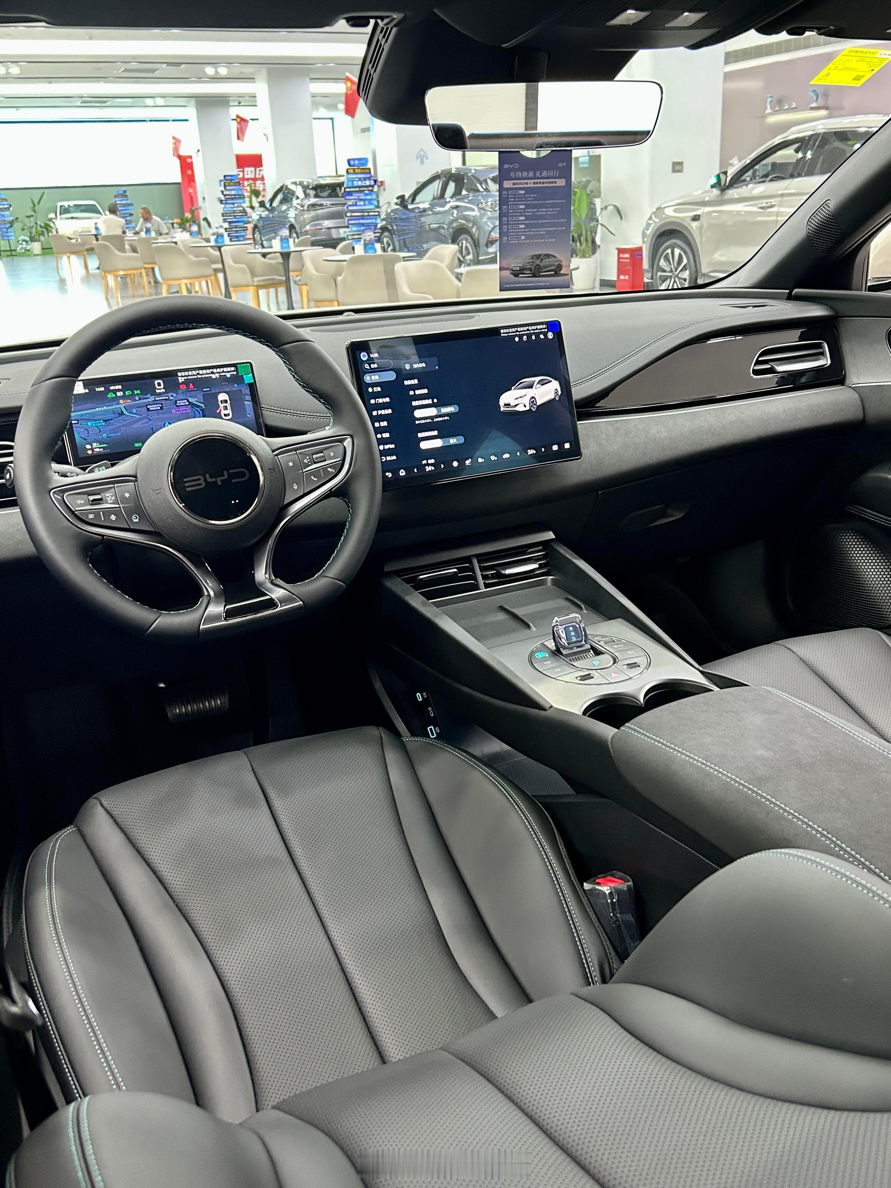 后排空间比海豹05大不少,座椅更软,坐进去感觉像B级车。