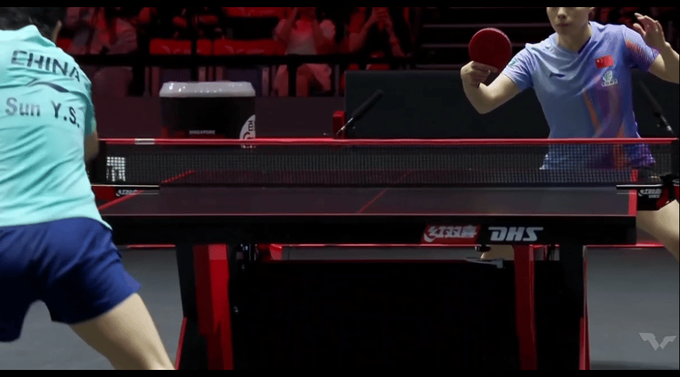 孙颖莎vs石洵瑶 全方位欣赏孙颖莎这个球,石洵瑶反手变直线给的角度真的非常大,几乎是奔着死角去的,任谁看都是一个救不回来的极限大角,但是孙颖莎的启动速度和脚下移动足够快,能在极短时间内完成大范围的交叉步甚至可以反拉给对手更大的角度,飞身到位重心又稳,这就是孙颖莎的步伐,看似轻盈灵巧,其实全靠力量与功底,背后真的付出太多太多努力了。孙颖莎