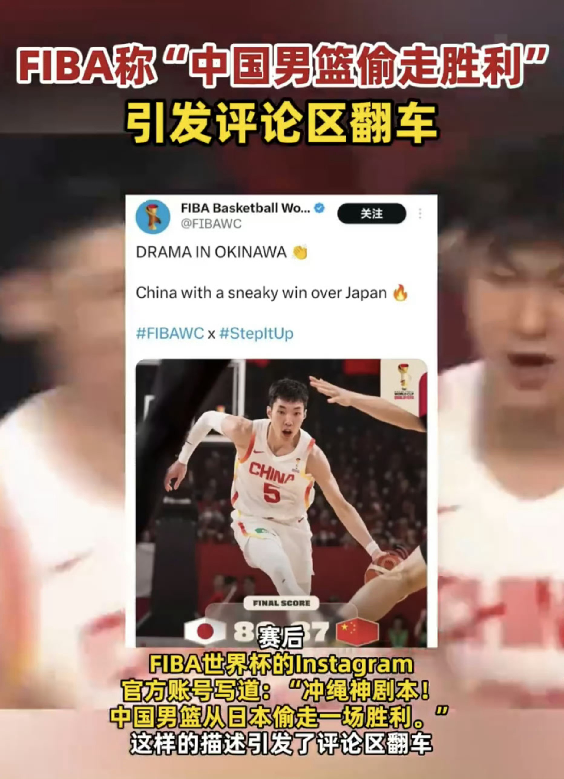 FIBA社媒称中国男篮偷走胜利 难以想象,作为一个官方机构账号,能有如此倾向性的