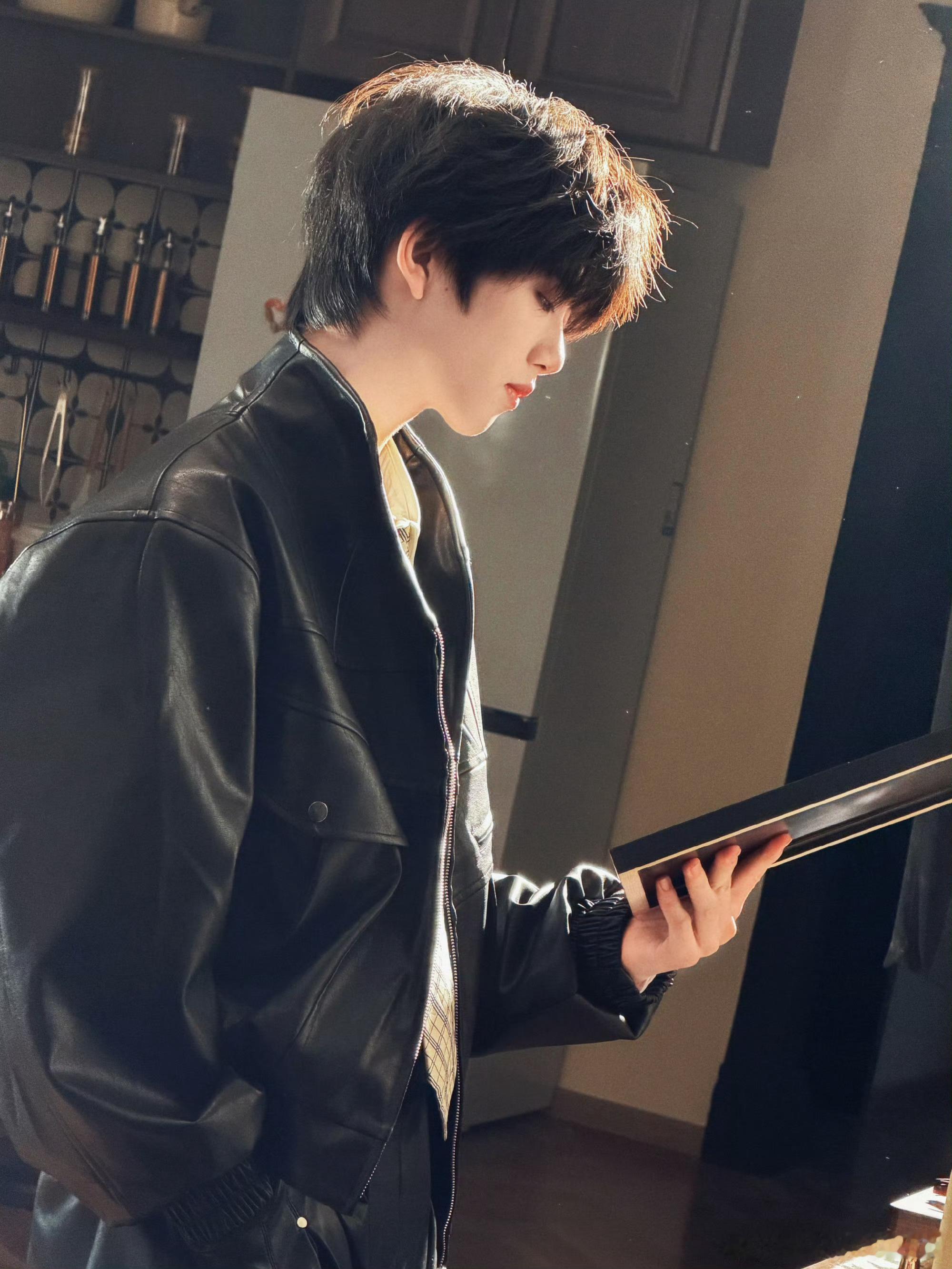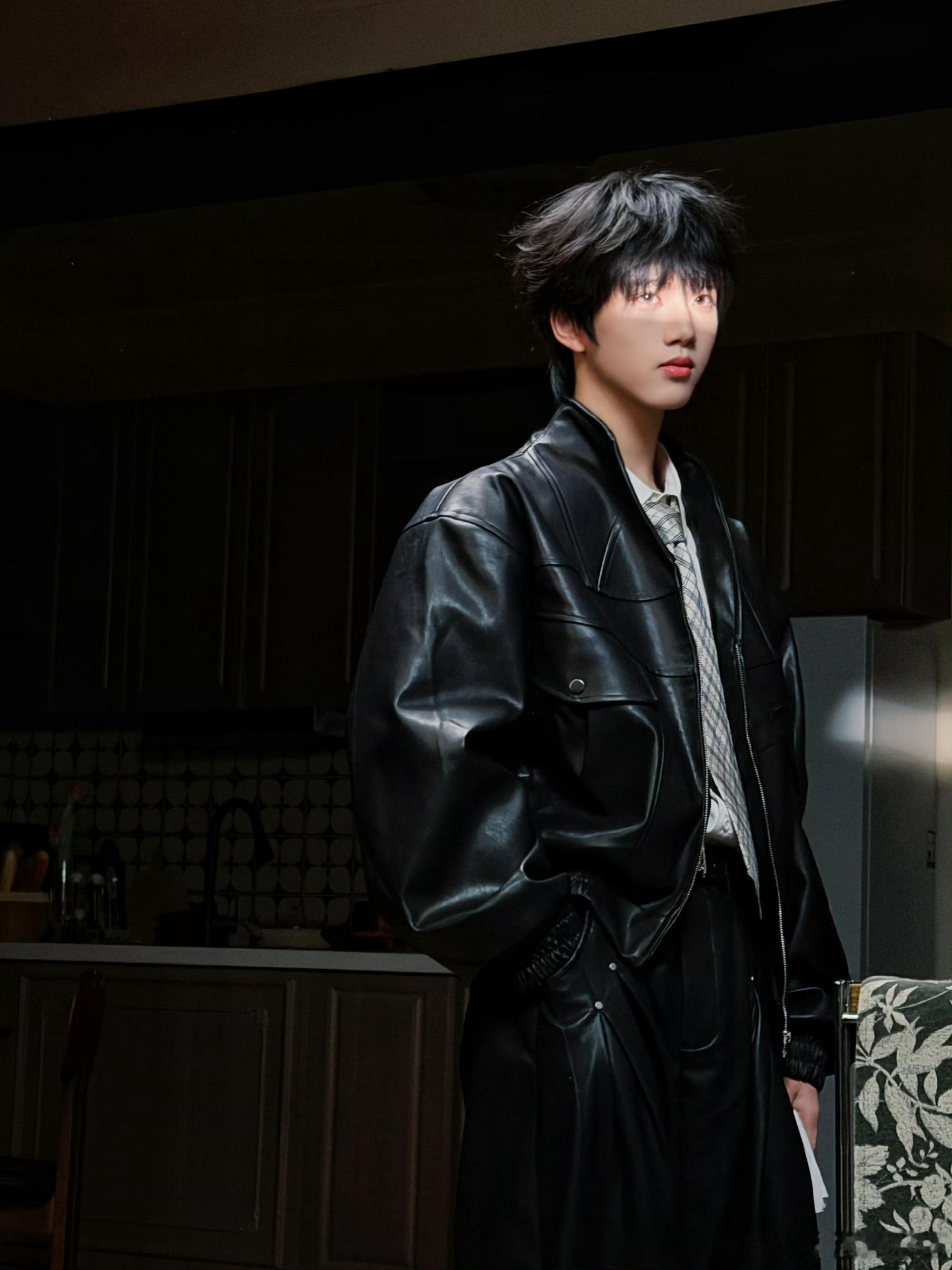 张函瑞黑皮衣十宫格张函瑞黑皮衣十宫格📷光影下帅气又可爱,黑皮衣小猫在线营业!每一张都是绝杀,帅到失语!颜值状态太能打了
