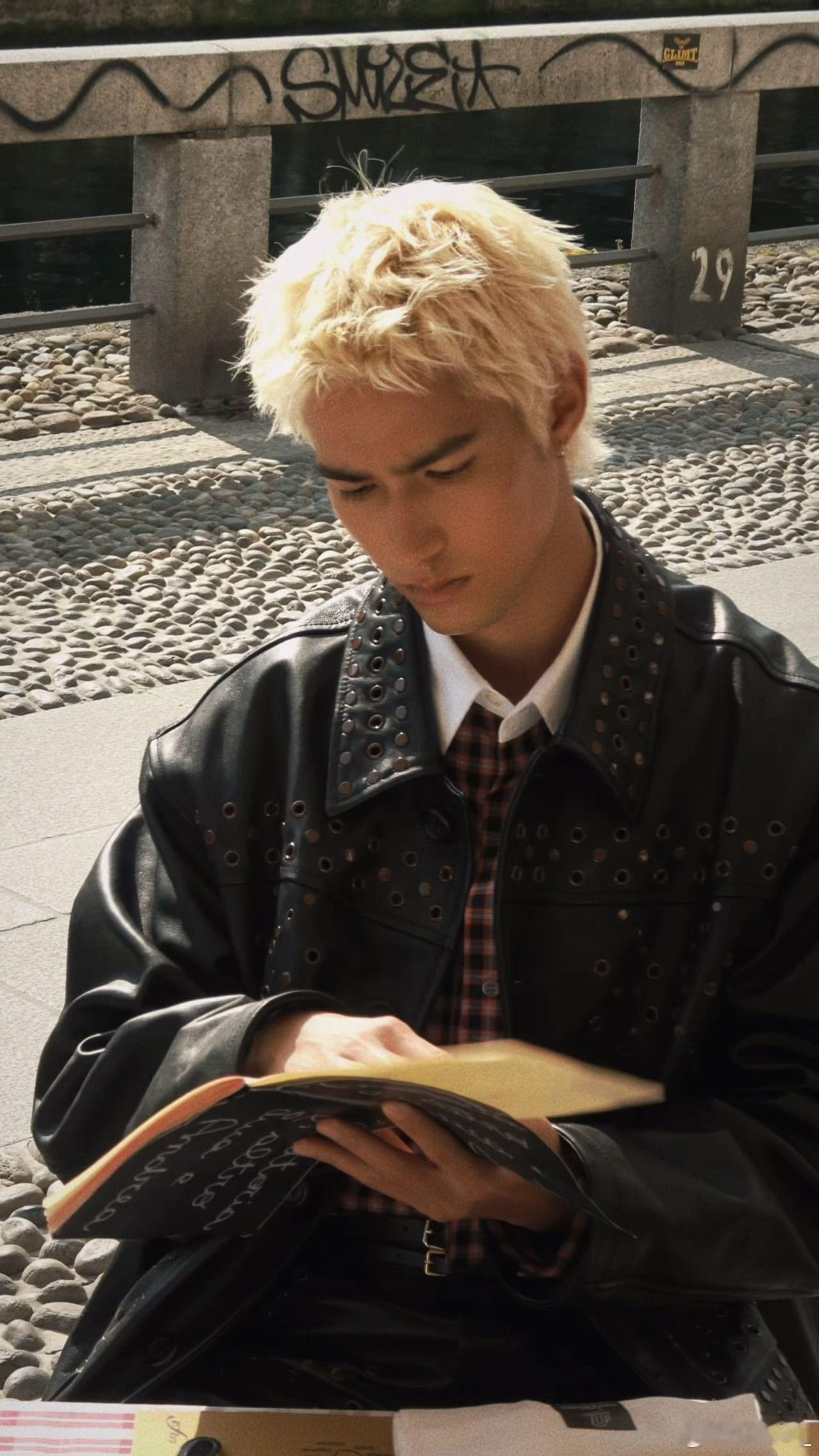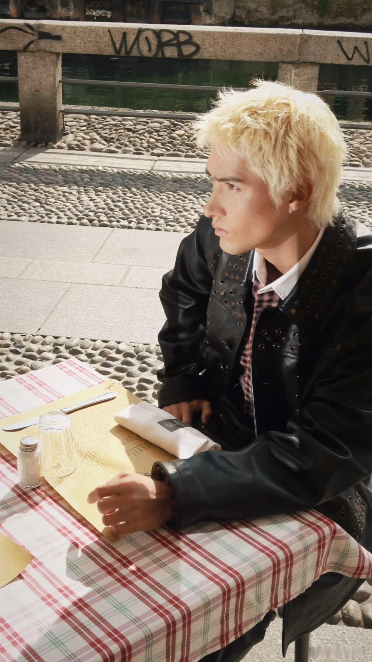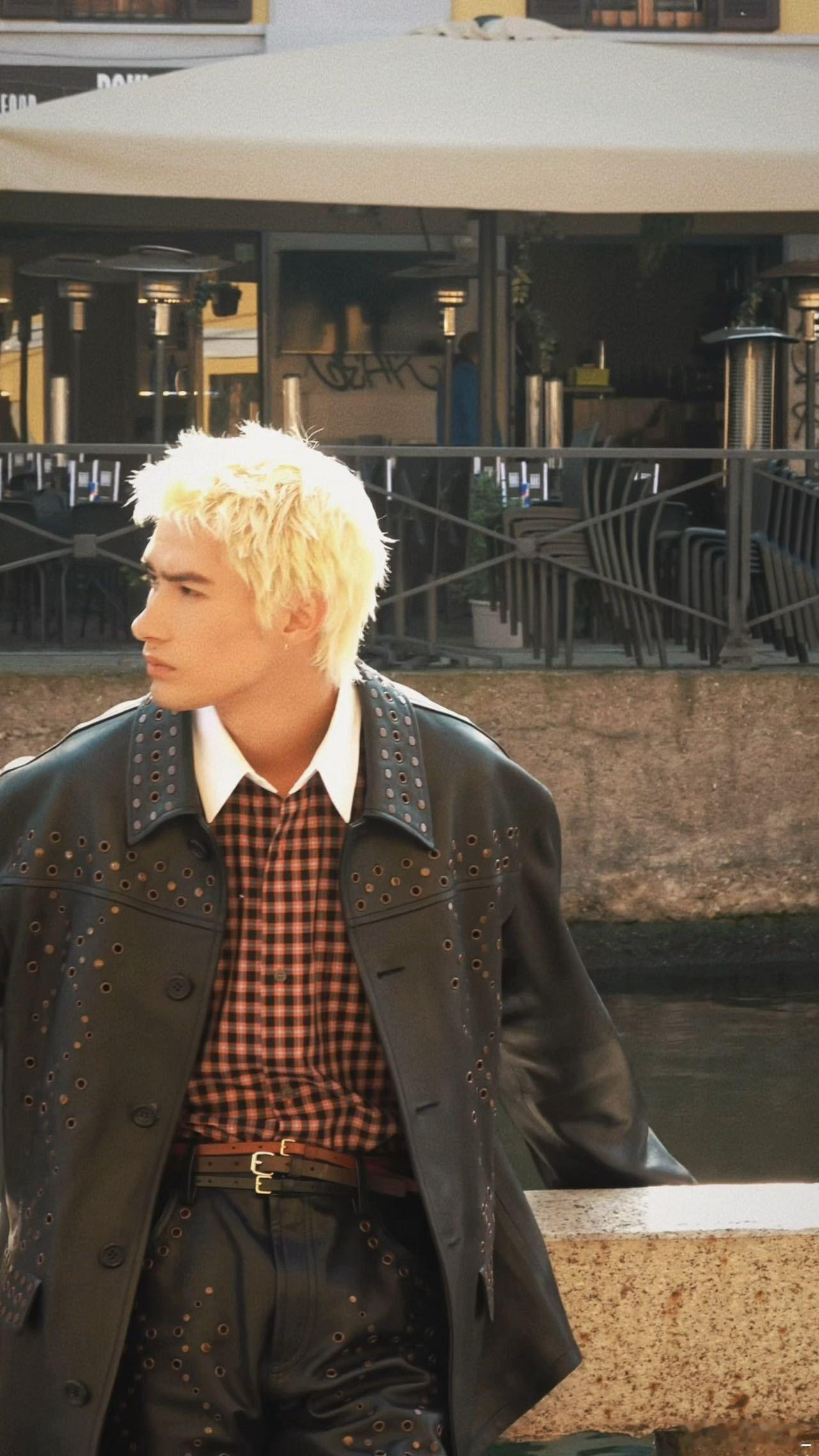 米卡赵美延同框 米卡在Marni26FW秀场这身造型太有记忆点了,别人都是黑白灰高级感,他直接用夏威夷阳光晒出来的肤色搭配白发,完美复刻了沸羊羊的时尚变装。